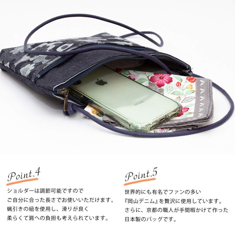 [creareきき] ポシェット レディース 斜めがけ 小さめ 軽量 日本製 岡山デニム 軽量ミニショルダー 2ファスナー 母の日 お母さん 誕生日 プレゼント DJ-111m