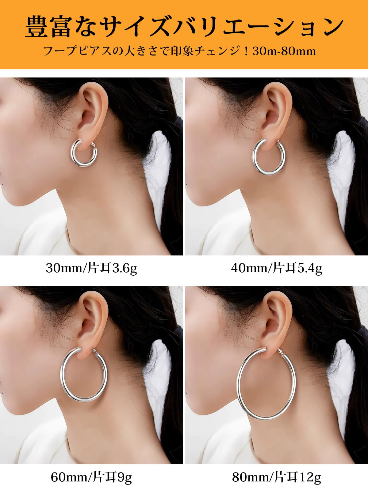 ?【素材】レディース フープピアス全体にステンレスを採用します。ステンレスは色落ちにくく、アレルギーになりにくく、頑丈で優れた金属です。金属アレルギーを心配する方もご安心なサージカルステンレスピアスです。