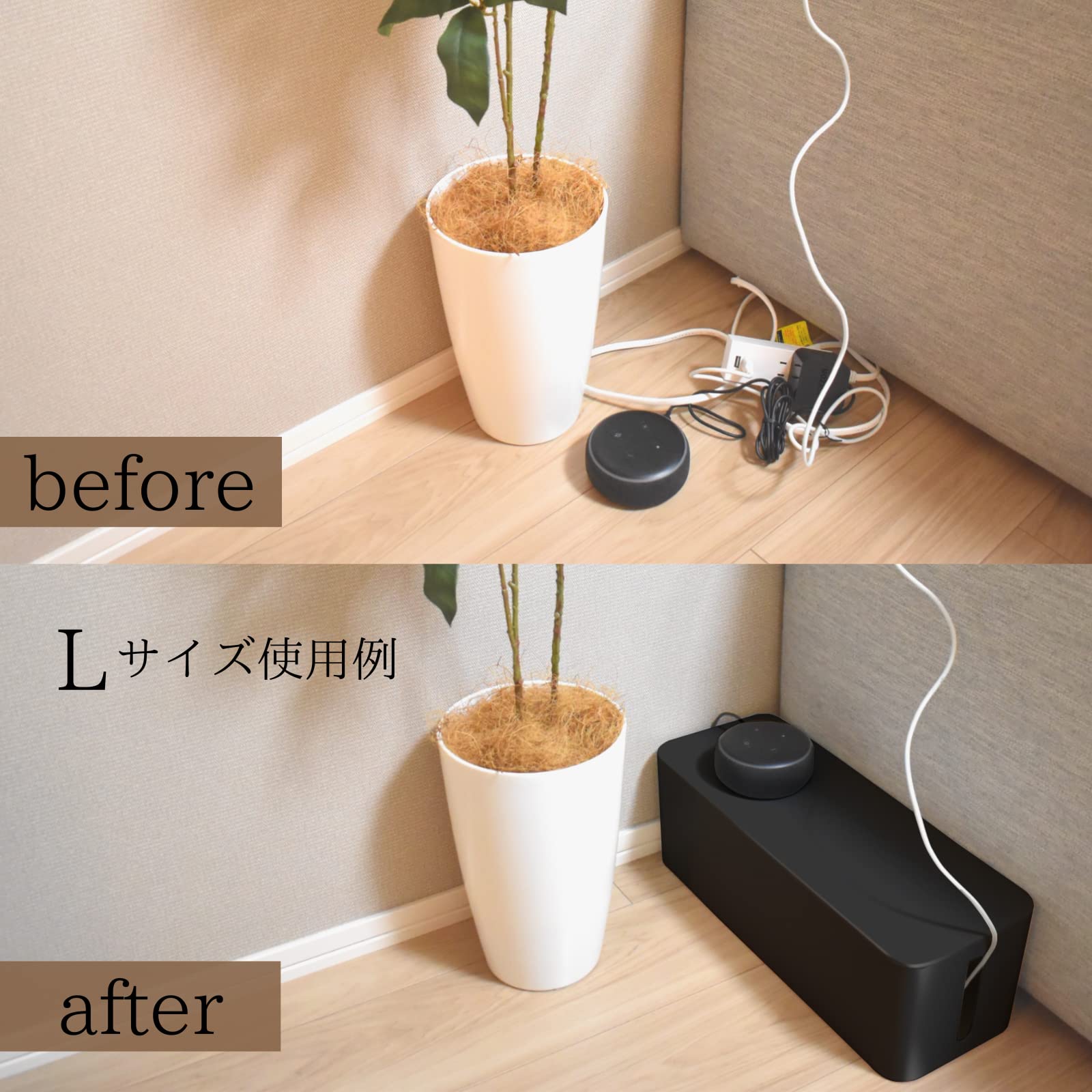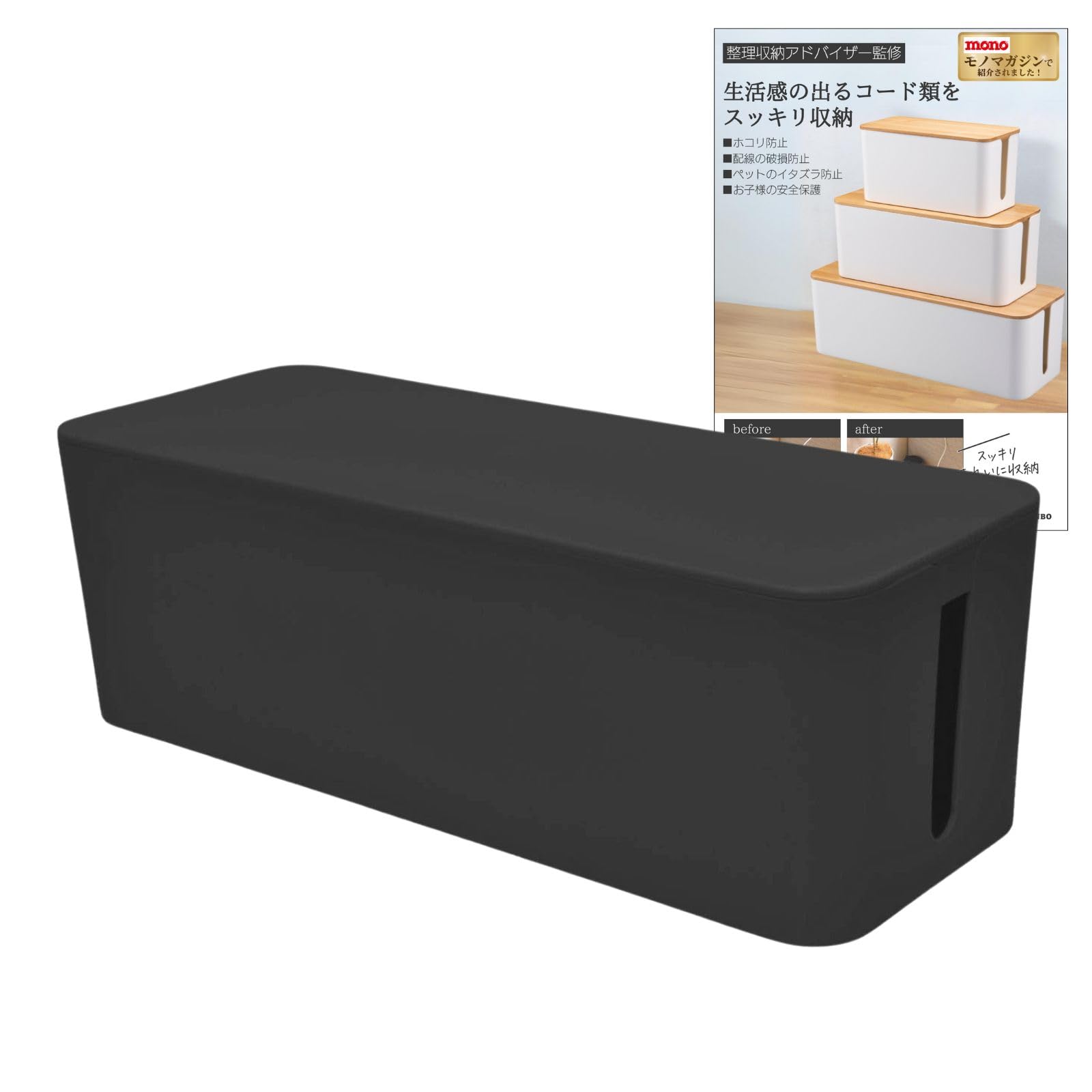 【努力特価】【monoマガジン掲載・整理収納アドバイザー監修】ケーブルボックス 配線隠し ケーブル 収納 コード 収納 コンセントボックス 配線ボックス コンセント収納 コードケース 配線 ケーブル隠し コードボックス mugenbo (L ブラック 単品)