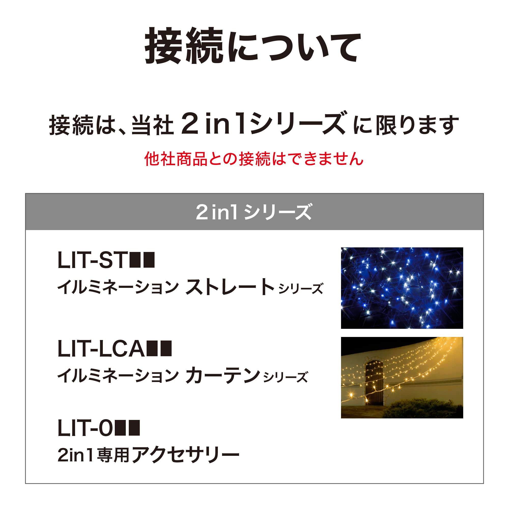 ※タカショーのLIT(2in1)シリーズ専用です。それ以外は接続しないでください。
