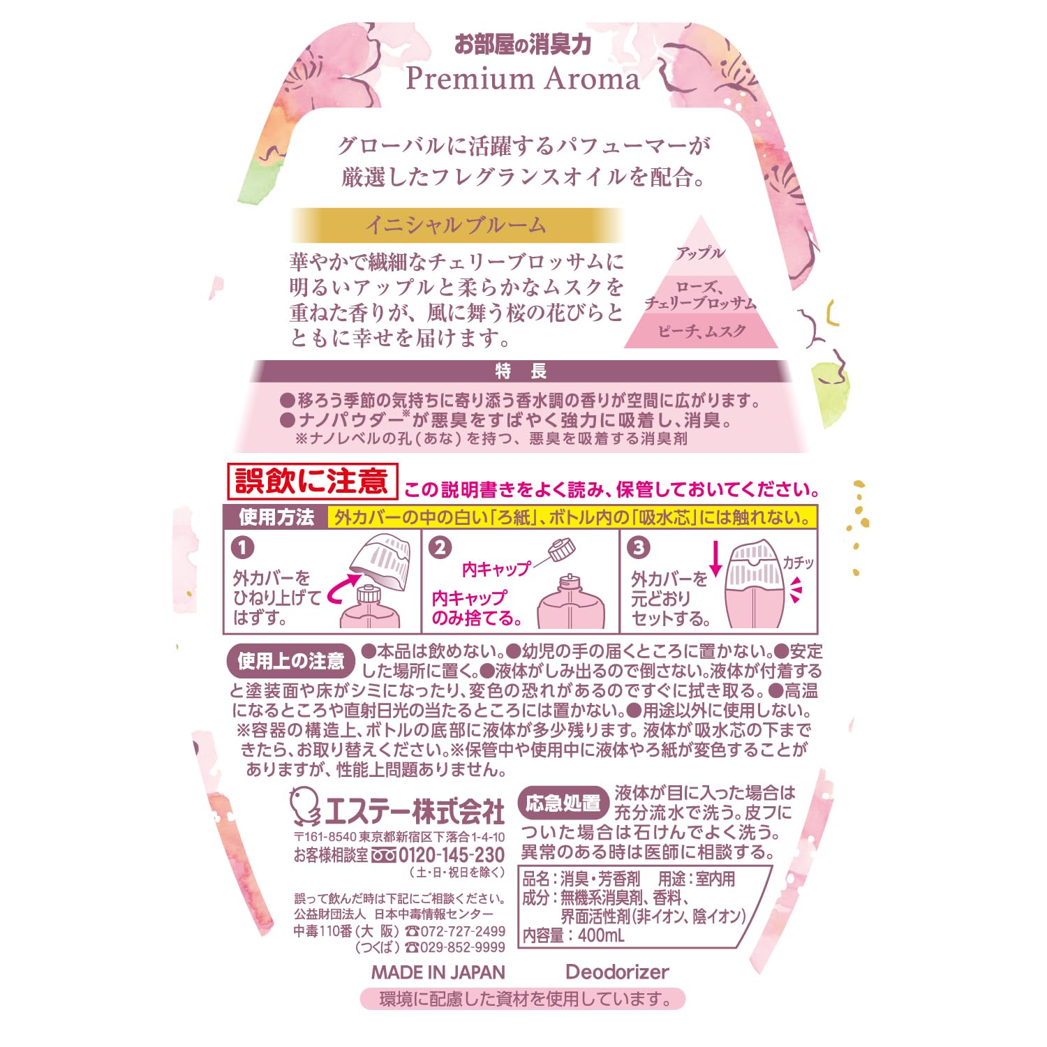 【努力特価】消臭力 プレミアムアロマ [まとめ買い] 部屋用 置き型 イニシャルブルーム(桜) 400mL×3個 お部屋の消臭力 玄関 リビング 寝室 ルームフレグランス 消臭剤 消臭 芳香剤 2025