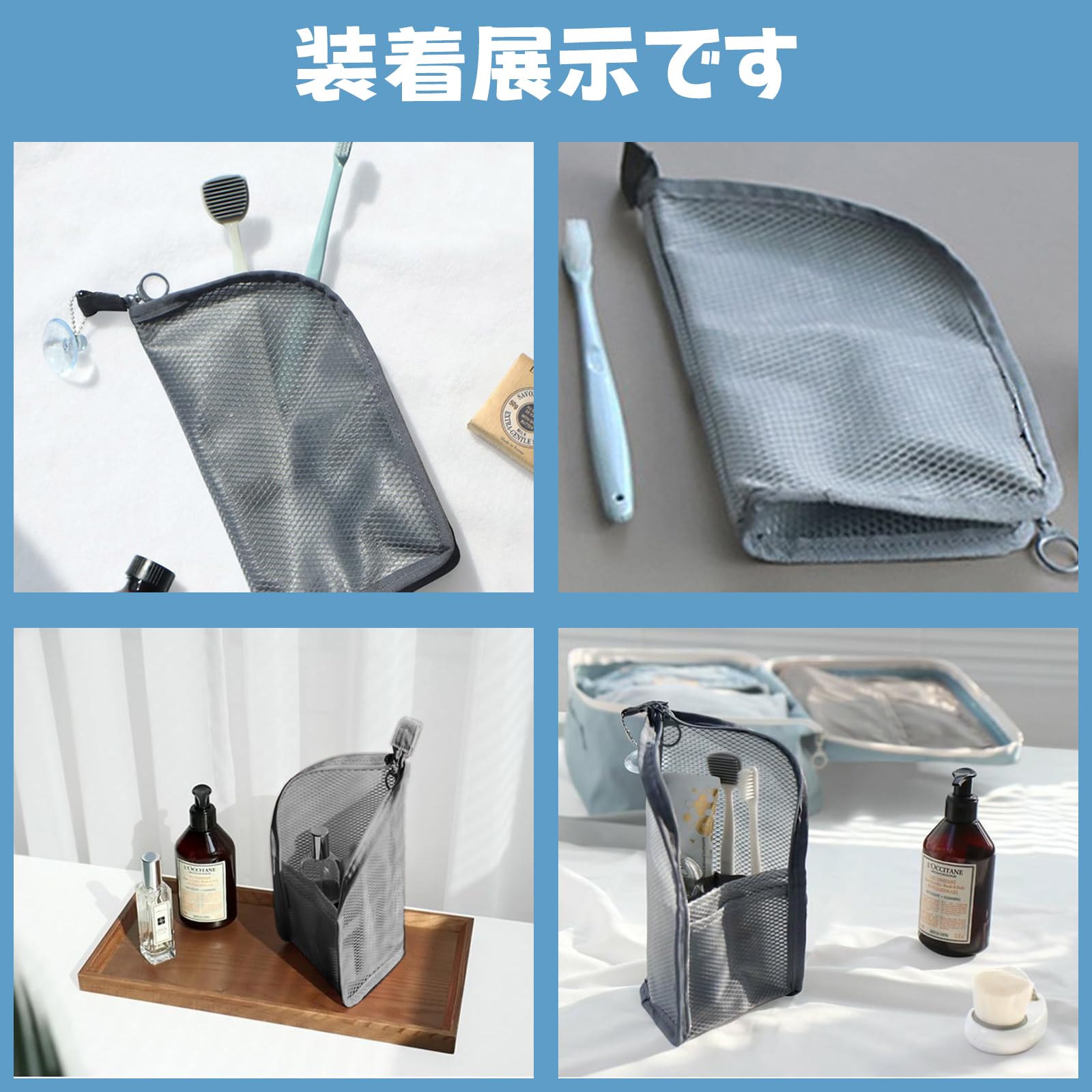 Doyime 歯ブラシポーチ 歯ブラシ 収納バッグ 歯ブラシケース 歯磨き ブラシ 化粧筆 洗面用具 収納バッグ 多機能 立てられる 使いやすい 防水 軽量 便利 携帯用 旅行 出張 外出 男女兼用 グレー