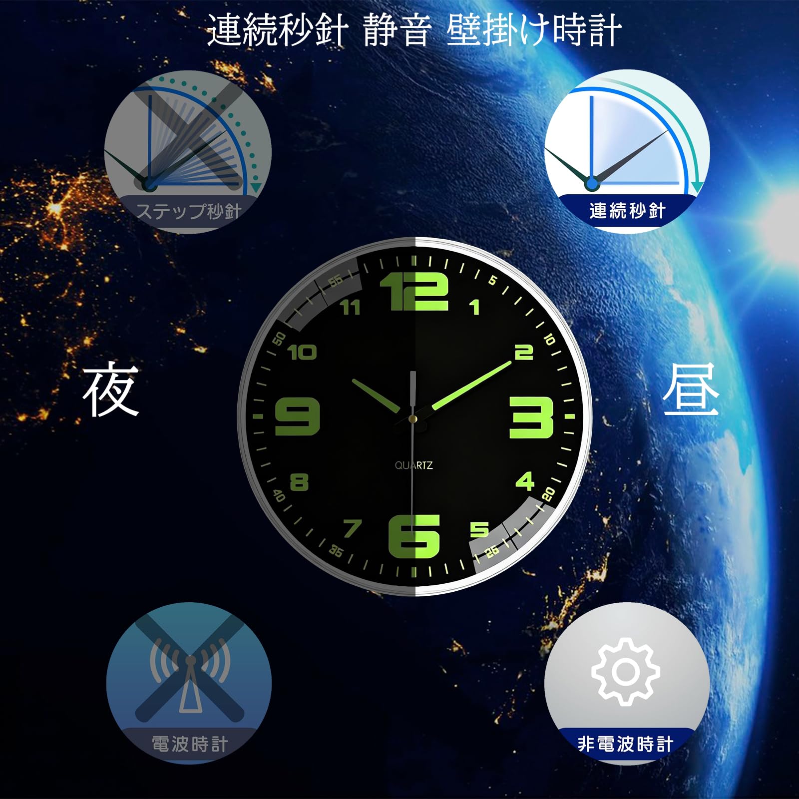 【努力特価】掛け時計 夜光 壁掛け 暗くなると自動で光る 連続秒針 北欧 大数字 壁掛け 蓄光蛍光 アラビア数字 静音 自宅 寝室 装飾 昼も夜も見える 見やすい