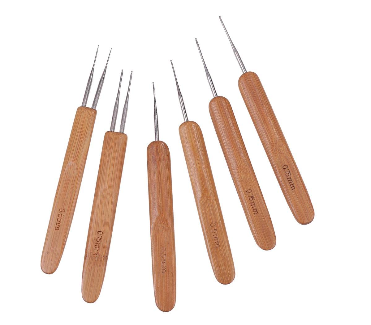 【新着特価】髪編み 用 ドレッドロック 6本セット 0.5mm 0.75mm かぎ針編み フック ソフトタッチ 鋼 ドレッドヘア 編み針 編組 ロックス