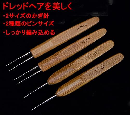髪編み 用 ドレッドロック 6本セット 0.5mm 0.75mm かぎ針編み フック ソフトタッチ 鋼 ドレッドヘア 編み針 編組 ロックス