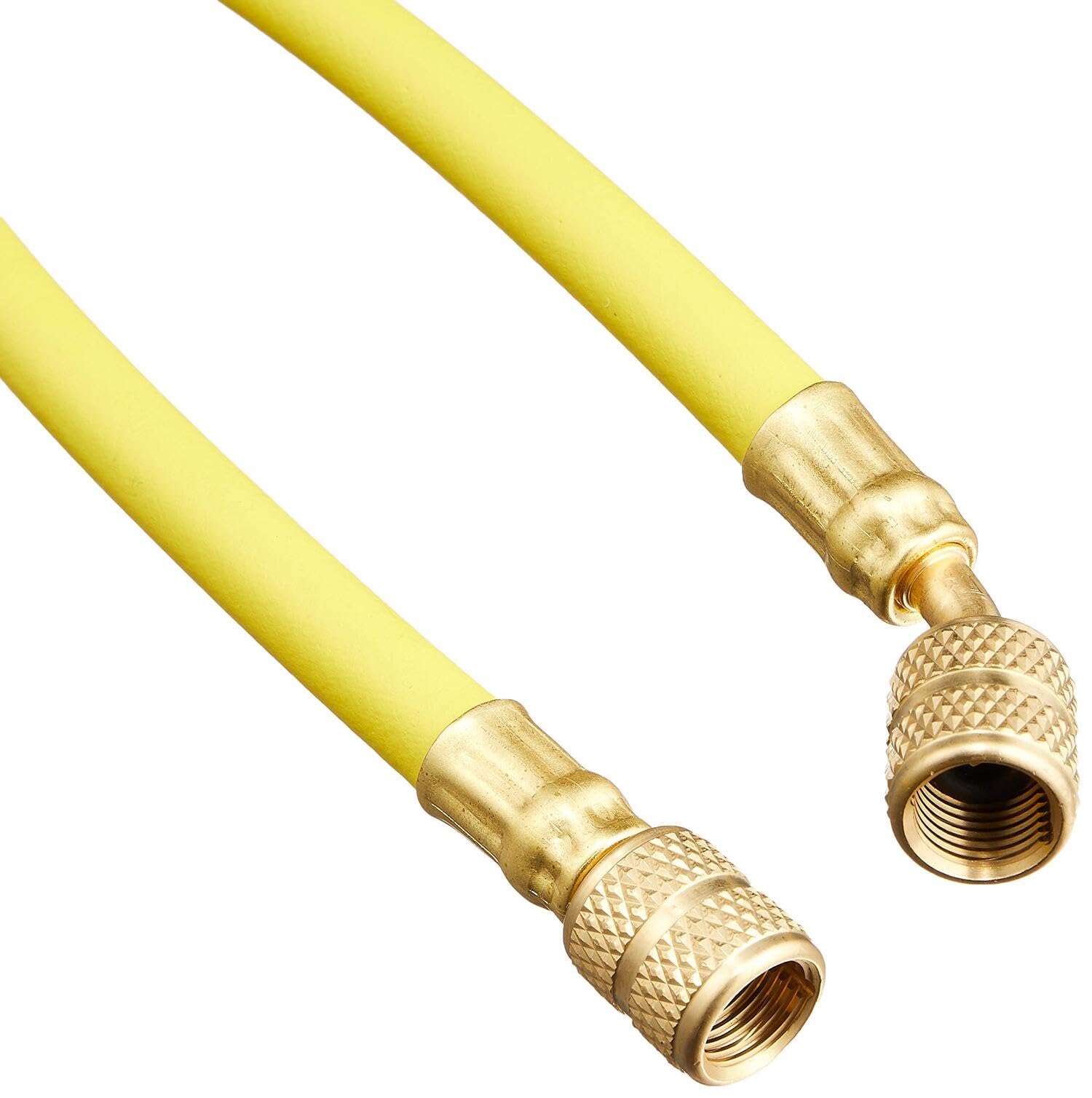 イチネンTASCO TA132AF-3 チャージホース92cm黄 ホース長:92㎝ カラー:黄 常用圧力:5.5MPa 破壊圧力:27.5MPa 内面耐HFC用ナイロンコート ●R410A、R32に接続可能 ●ナイロンコーティングのため、冷媒の透過が少なく高耐圧、冷媒による材質変化をしにくい仕様。HNBR素材高耐圧構造パッキンを採用 ●※チャージホースは耐圧気密テスト用には使用しないでください。表面に亀裂やパッキンの状態など使用毎に確認し、必要に応じて早めに交換する事をお勧めします。