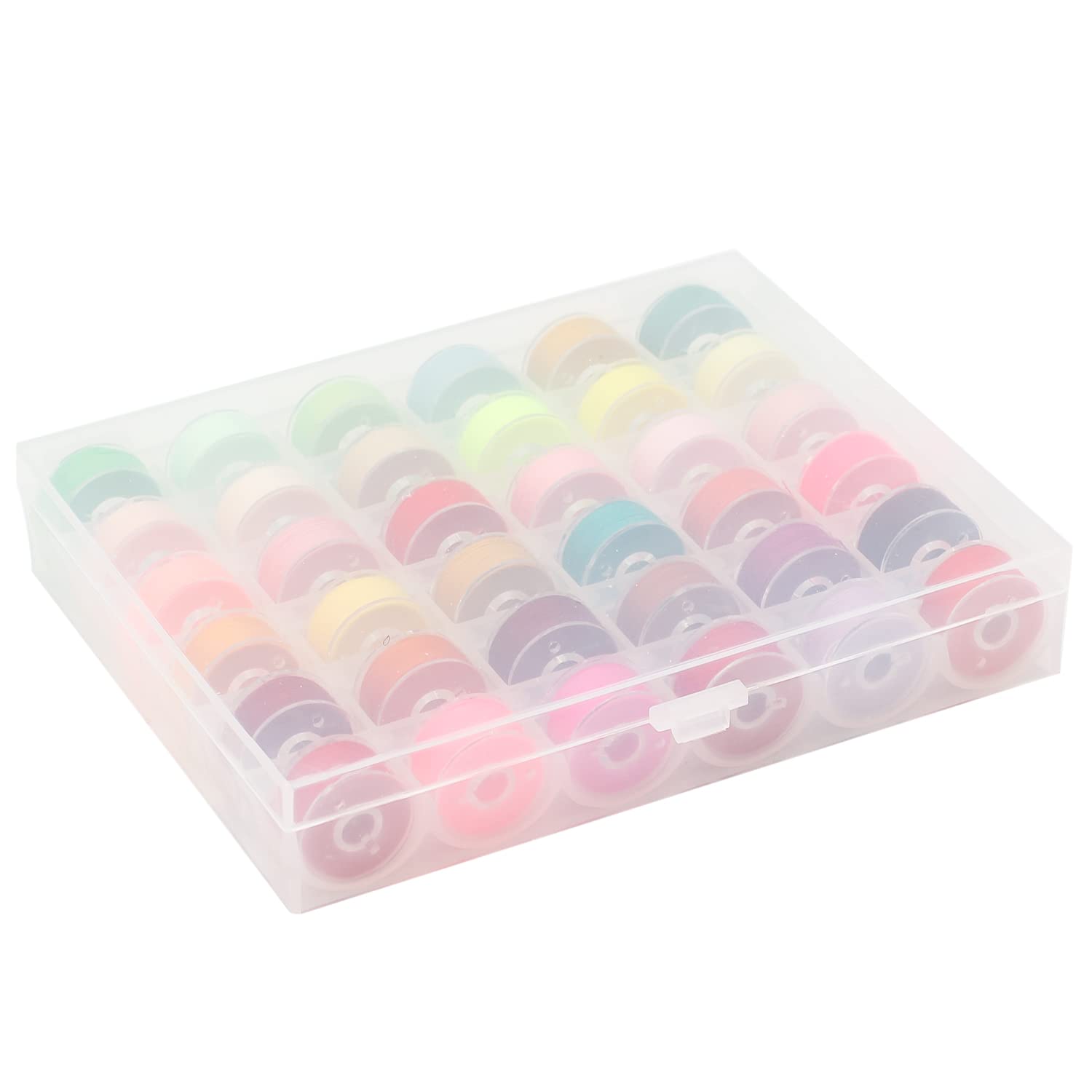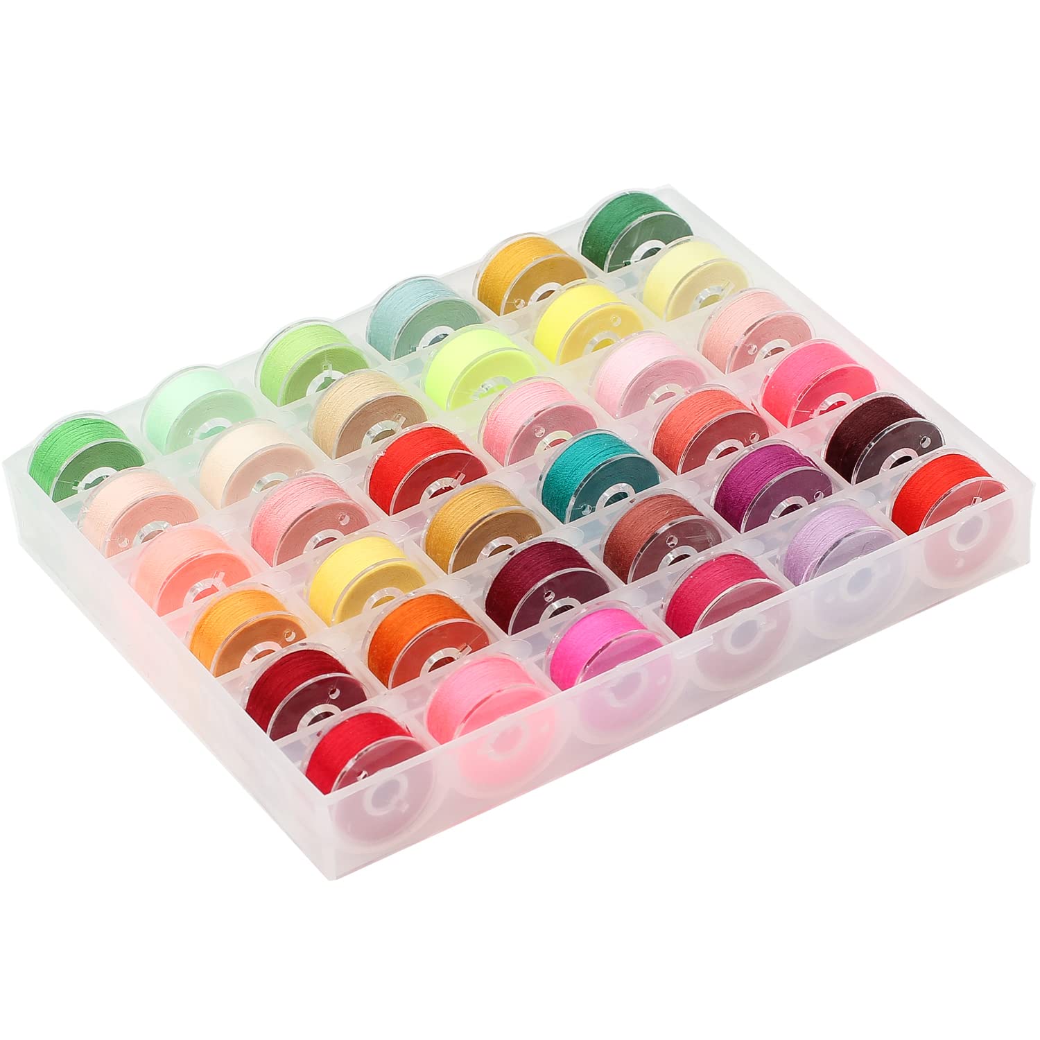 グリーン、イエロー、オレンジ、ピンク、レッド、ブラウンなどの明るい常備36色の糸セットで、様々なニーズを満たせ便利なボビンセットです。 収納箱も付きます。