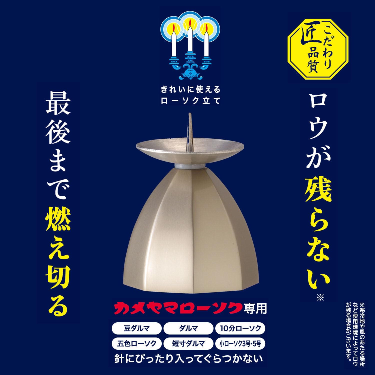 カメヤマ あんしん燭台(小) ロウが燃え切る ロウが残らない