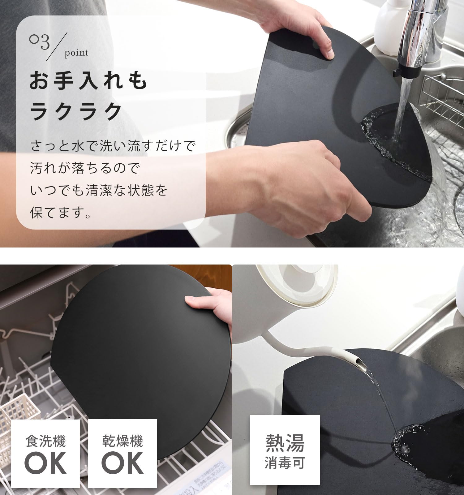 ?【簡単お手入れ】サッと水で流すだけで汚れが落ちる。衛生的でいつでも清潔な状態を保てます。食洗機、乾燥機の使用OK。熱湯消毒も可能です。