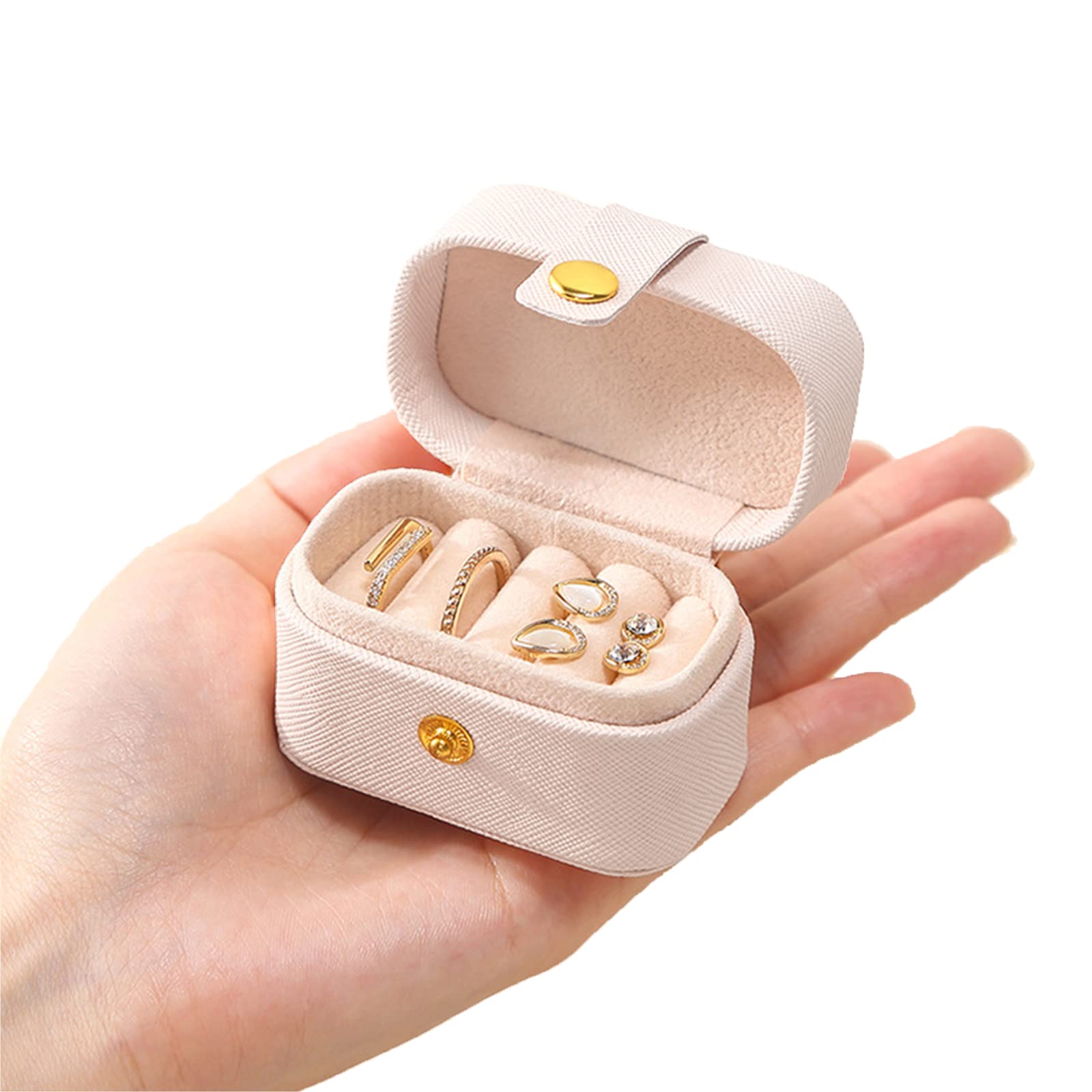 【在庫処分】ジュエリーボックス 小箱 ジュエリー 宝石箱 持ち運び コンパクトPUレザー ジュエリー収納 アクセサリーケース 小物入れ 指輪 ピアス (ホワイト)
