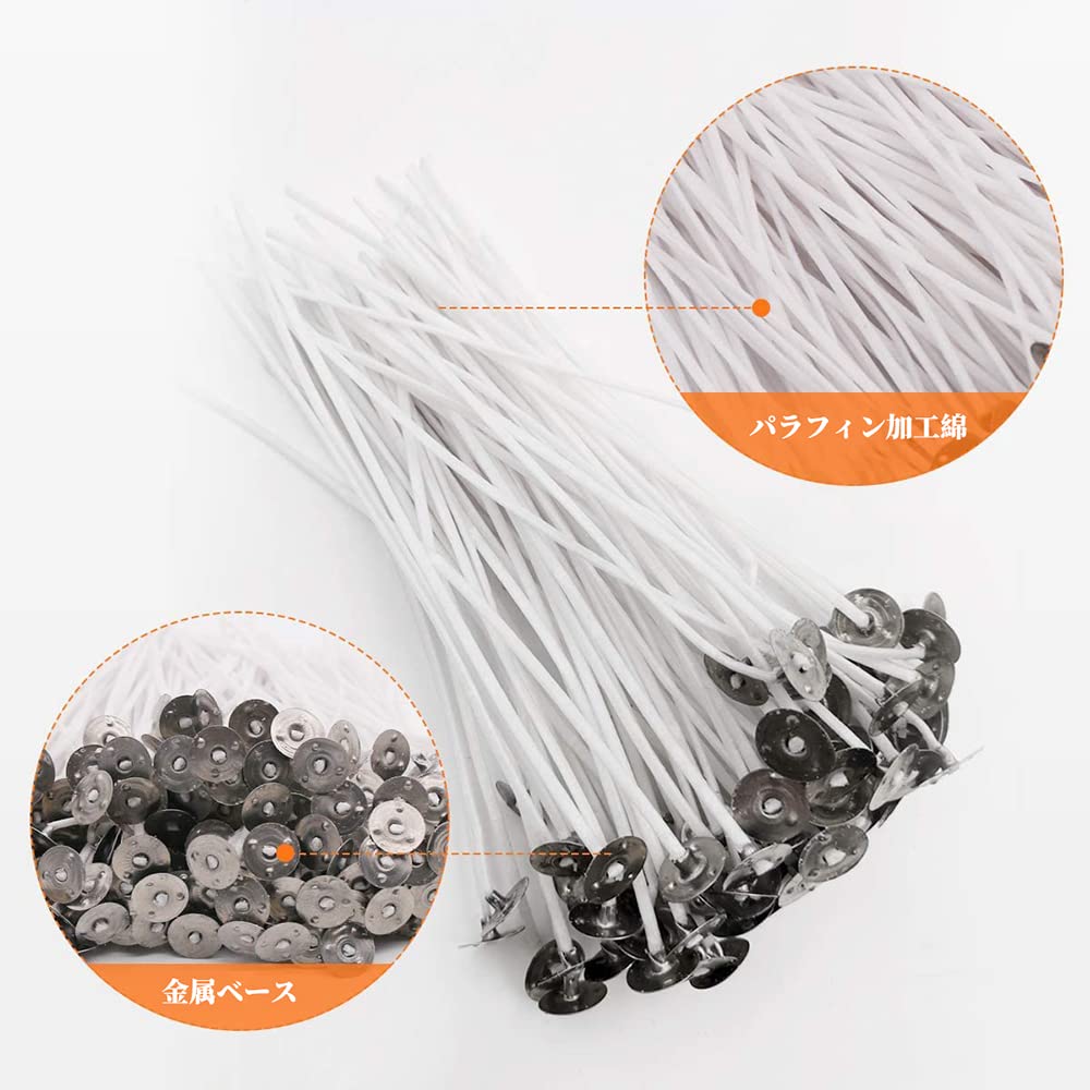 【セット内容】キャンドル芯*100個 、芯固定ホルダー*3個、丸形両面テープ×100個。注意:輸送中に押し出しが発生し、ろうそくの芯が折れやすくなる可能性があります。このような場合は、すぐに連絡してください。