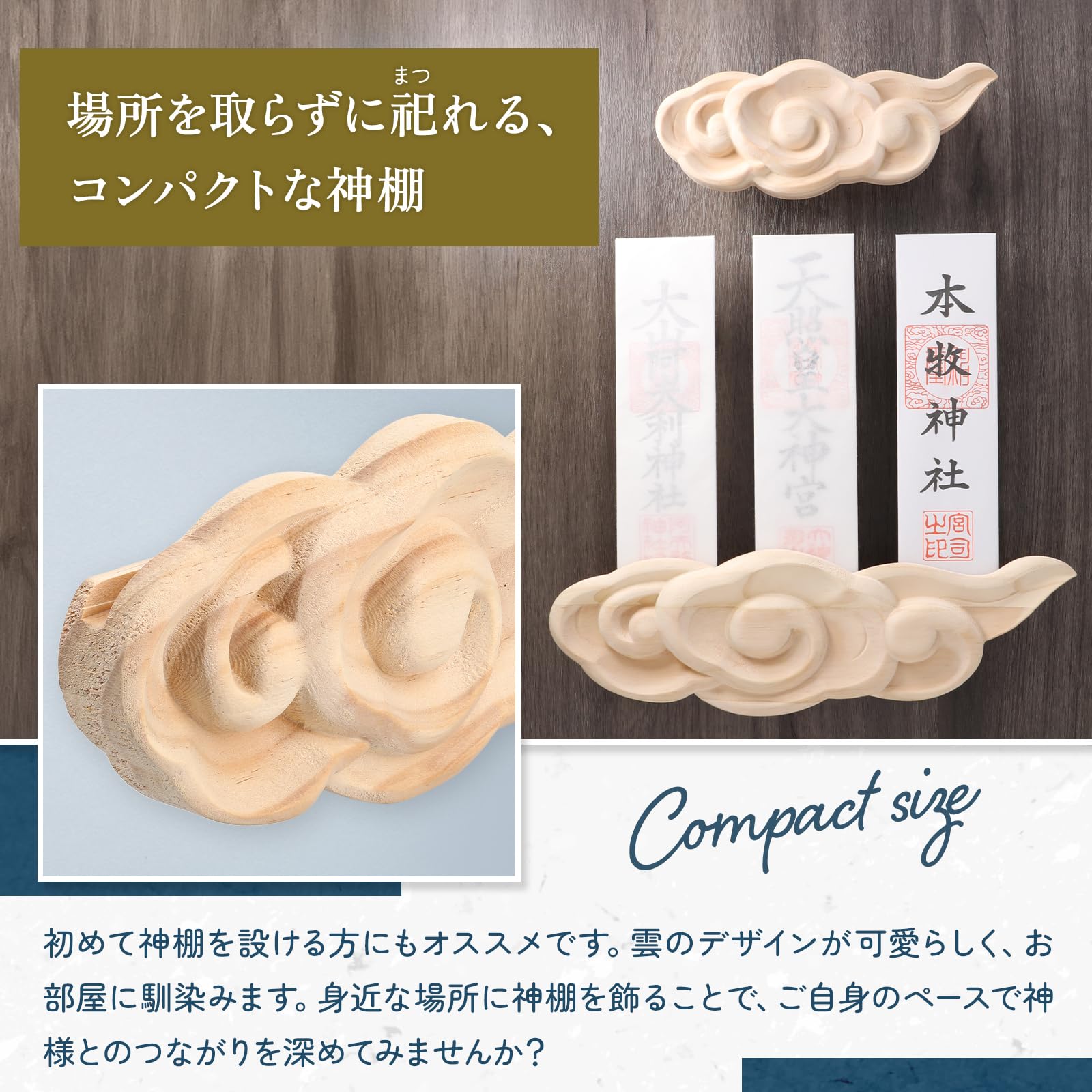 神棚 【神様も喜ぶ新しいカタチ】 筋斗雲 雲 御札立て お札立て おしゃれ インテリア モダン 壁掛け 簡易神棚 簡単設置 天然木 職人手作り (一社)