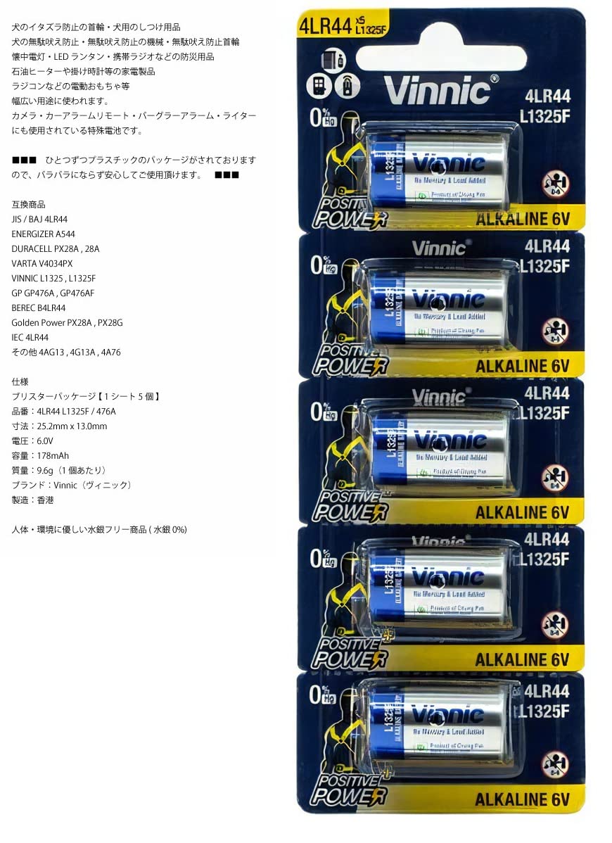 Vinnic 4LR44 6V アルカリ 乾電池 【 1シート 5個セット 】 水銀0% ブリスターパッケージ