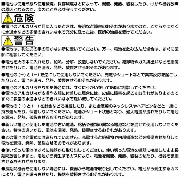 使用用途:犬のイタズラ防止の首輪・懐中電灯・LEDライト・携帯ラジオなどの防災用品、石油ヒーターや掛け時計等の家電製品・ラジコンなどの電動おもちゃ等、幅広い用途に使われます。