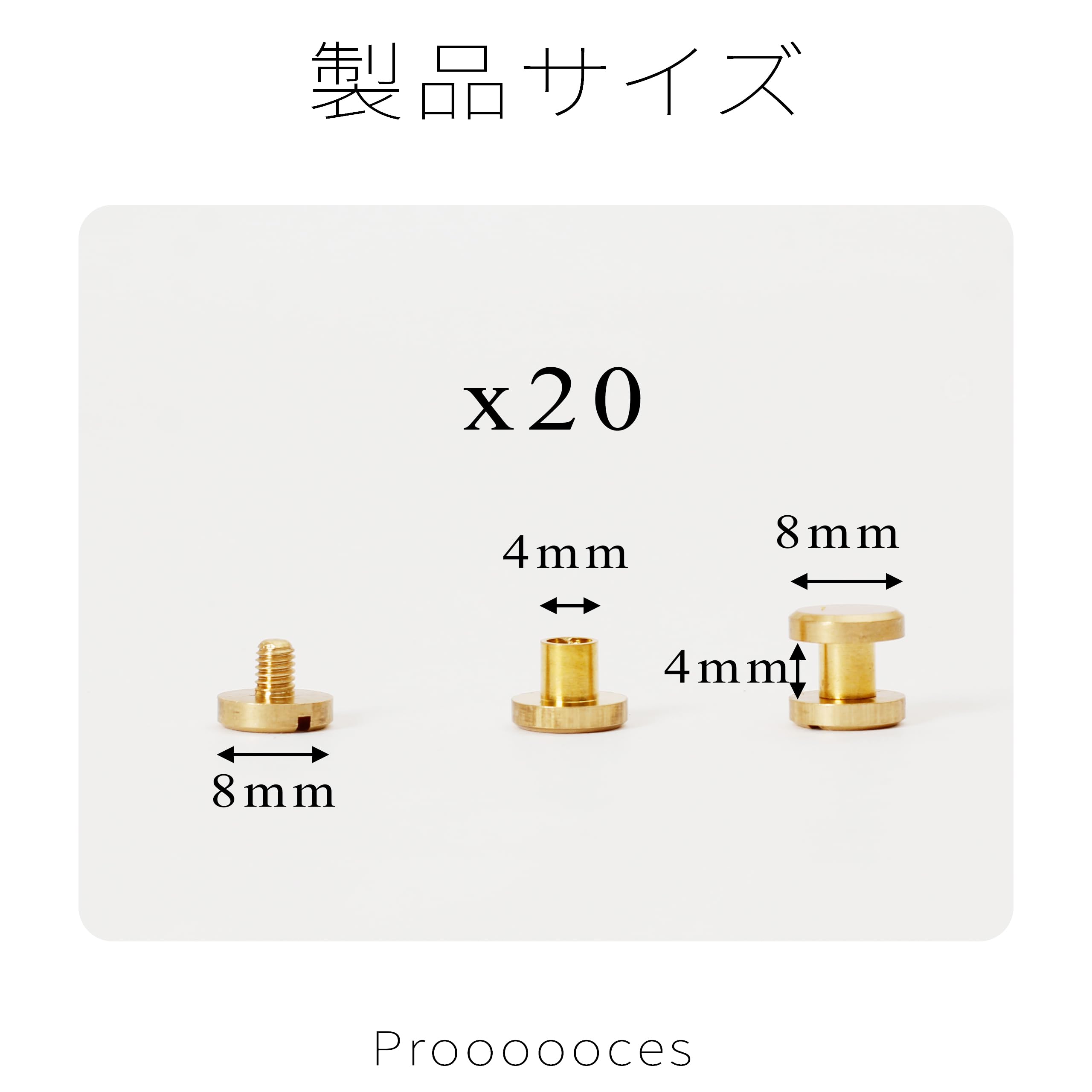 シカゴスクリュー 20個入り 8×4×4mm 真鍮組ネジ コンチョ バッグ ベルト 底びょう リベット スタッズ パーツ 鋲 リベット スタッド ネジ式 レザークラフト DIY ハンドメイド パーツ