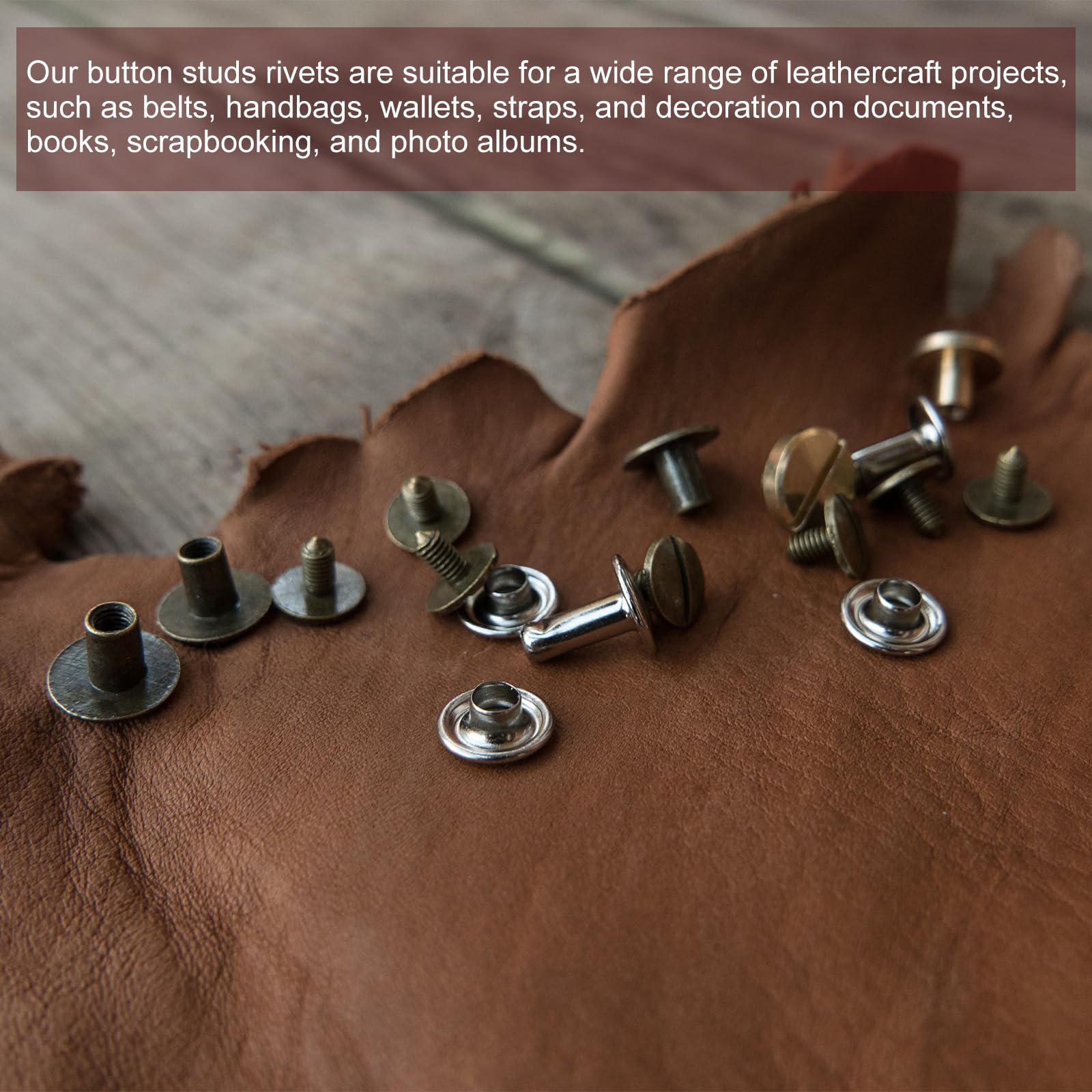 [安全で信頼性のある取り付け] - レザーの部品をしっかりと固定するために設計されたこのスクリューポストは、信頼性のある頑丈な接続を提供します。ねじ込みポストとスクリューヘッドのデザインにより、緩みや意図しない取り外しを防ぎます。