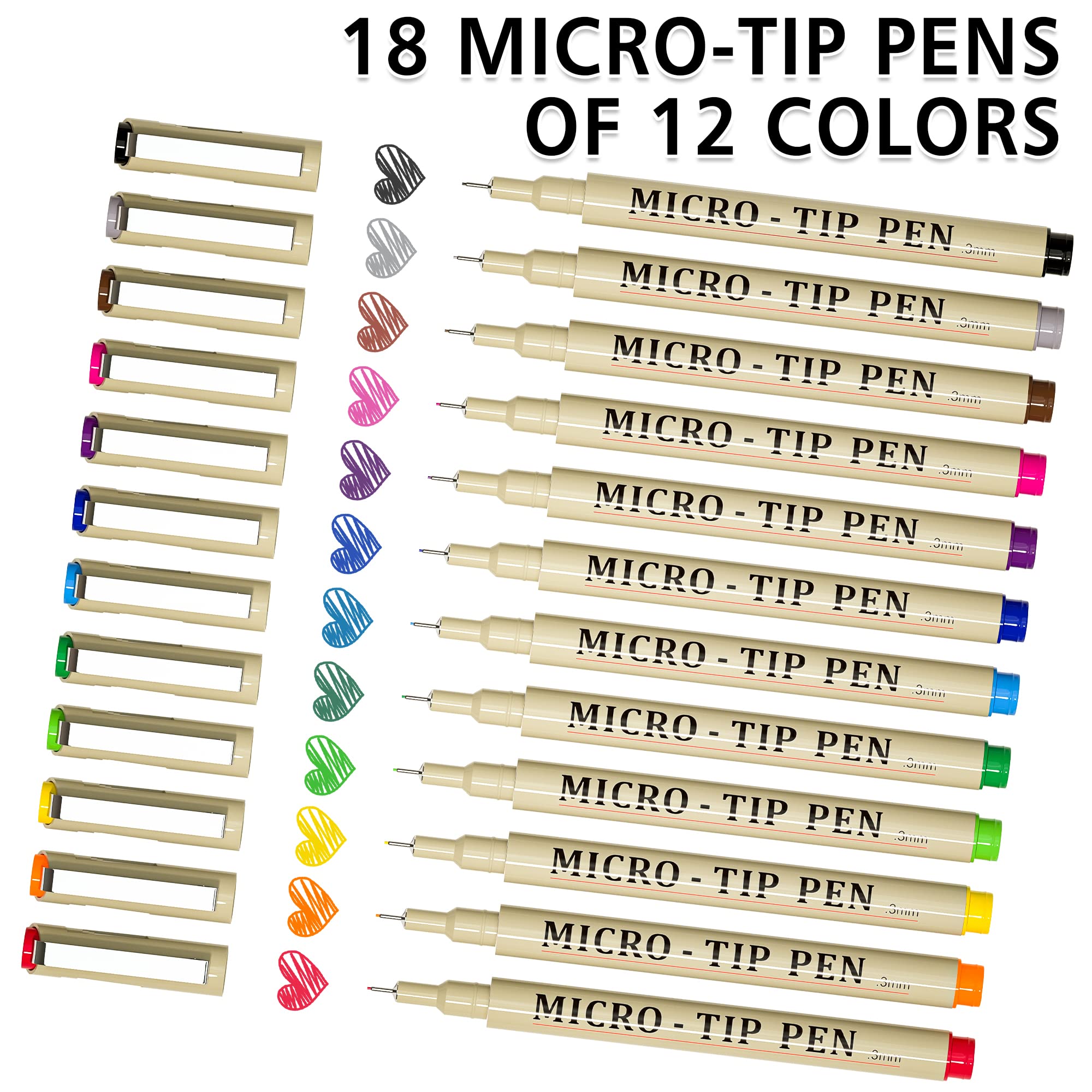 Shuttle Art ミリペン 製図ペン 12色 18本セット 水性 極細 線径0.15?0.5mm カラーペン イラスト 漫画用 線画ペン スケッチ ドローイング 曼荼羅・タングル・パターンアート デザインワーク プレゼント 手帳 絵描き