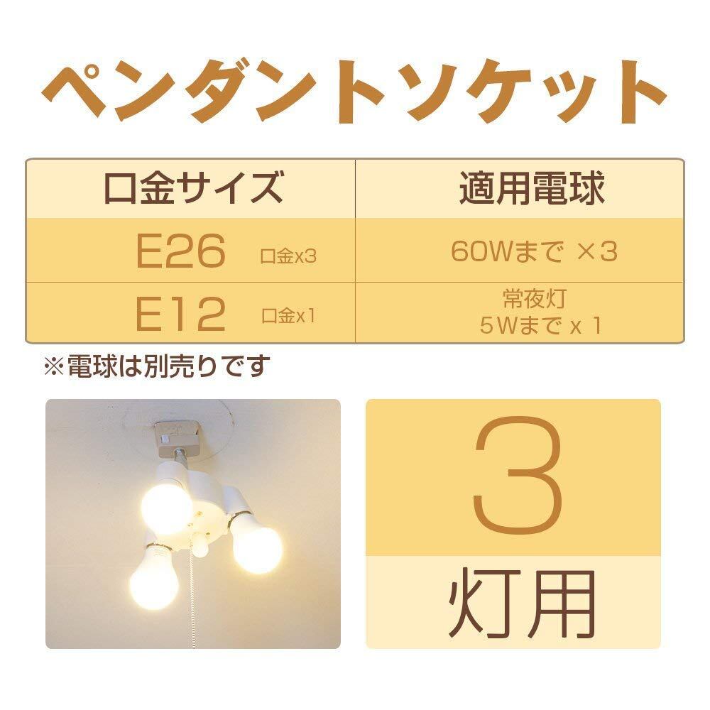 xydled ledシーリングライト E26 ペンダントライト 3灯 60cm超長いチェーン付き 電球なし ナツメ球ソケット付 天井照明 照明器具 LED電球対応 常夜灯対応 3灯式