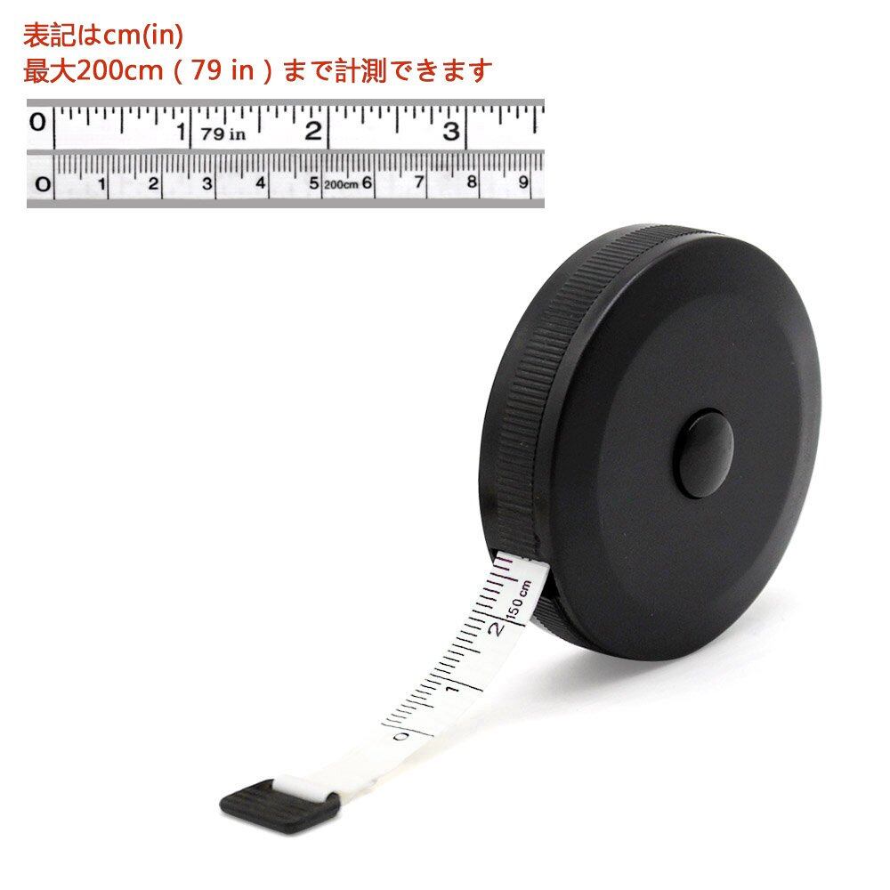 メジャー 裁縫 2m 洋裁 メジャー 巻き尺 定規 テープメジャー 200cm 79inch バスト ウエスト 測定 インチ センチ メジャー 服 巻尺 両面目盛 オートメジャー 巻取りボタン付き スリーサイズ ロングメジャー 計測 手芸 軽量 胸囲測定 (ブラック)