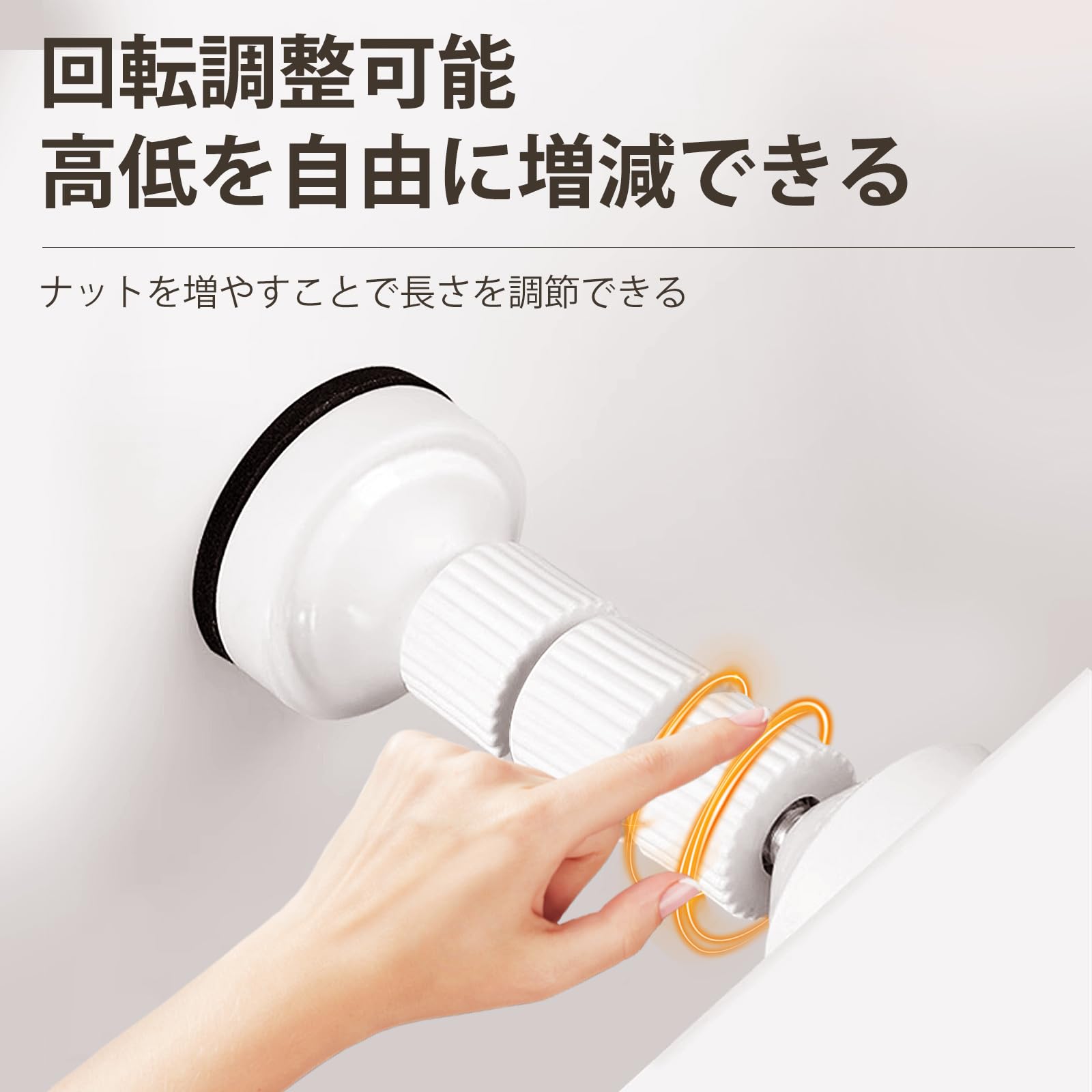 【突っ張り棒・サイズ・調整可】地震 転倒防止器カラー:ホワイト、ブラック。適用高さ4.3~14.4cm。隙間の幅に応じてナット数を変えてもしくはナットを回って設置することができます。ナットは1個につき長さ約2.8 cmです、高さを自由に調整。