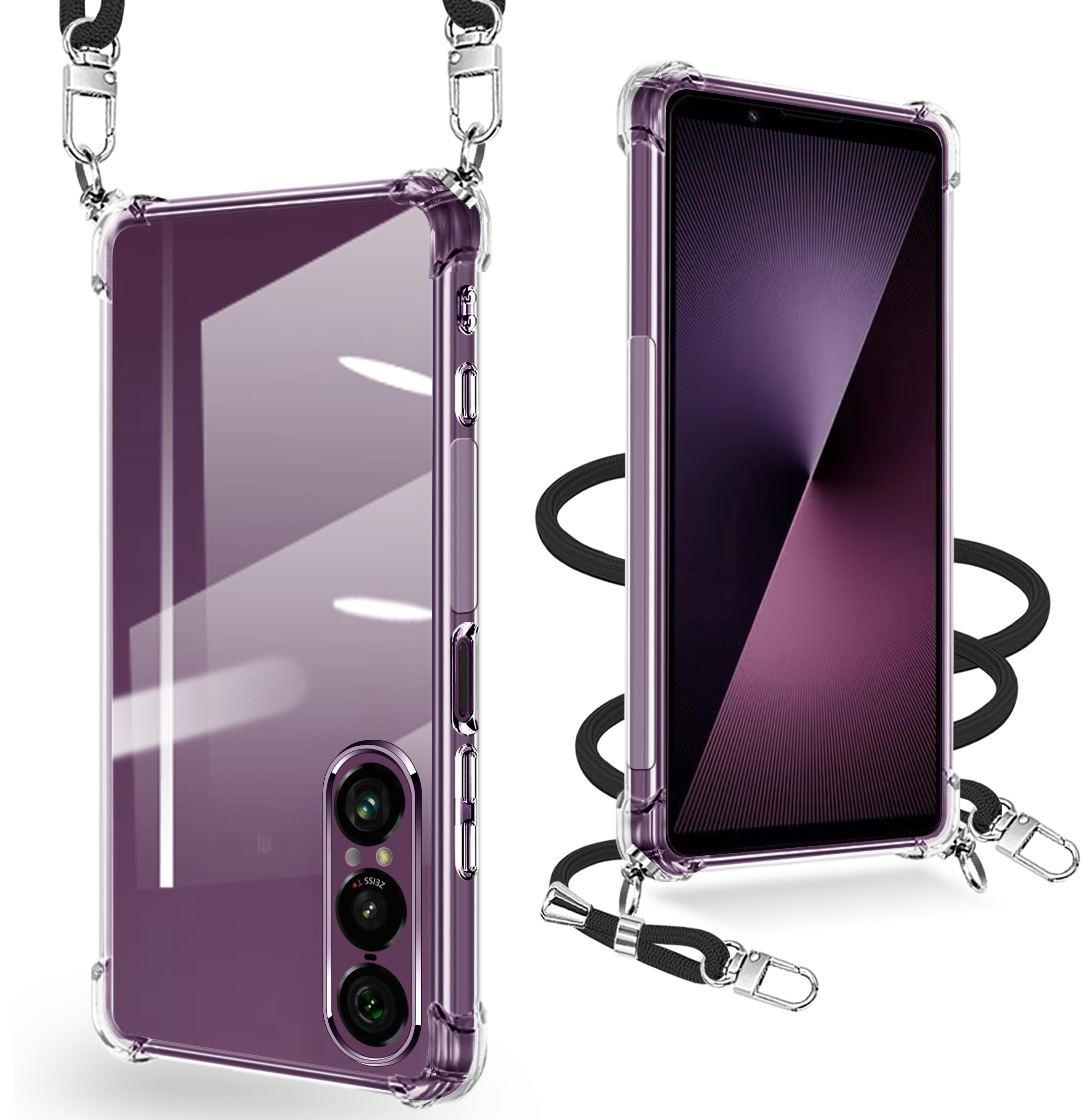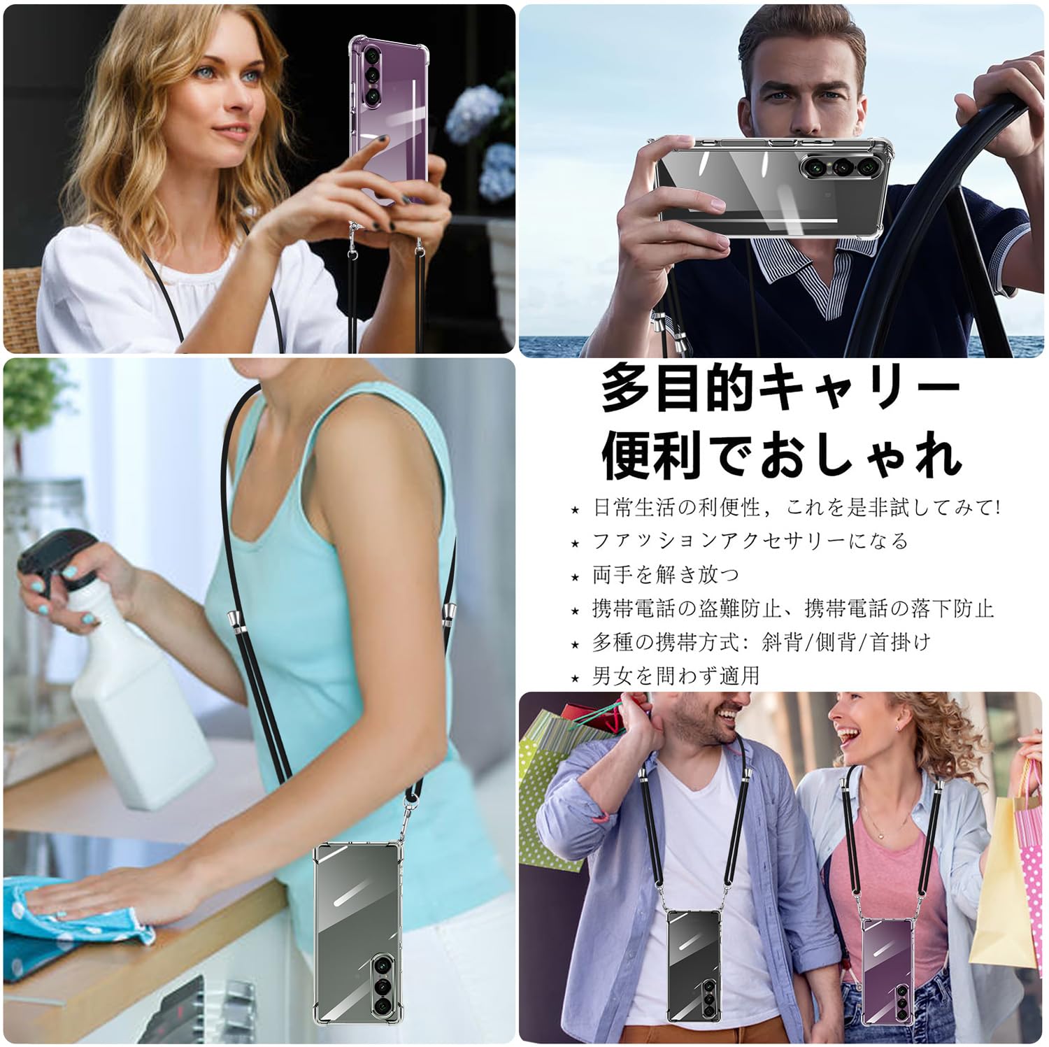 Xperia 1 VII ケース ショルダー クリア ケース 耐衝撃 全面保護 エクスペリア 1 VII カバー ストラップ付き スマホケース 調節可能 肩掛け 斜めかけ 縄掛けケース 紐付き 薄型 軽量 取り外し可能 落下防止【透明】