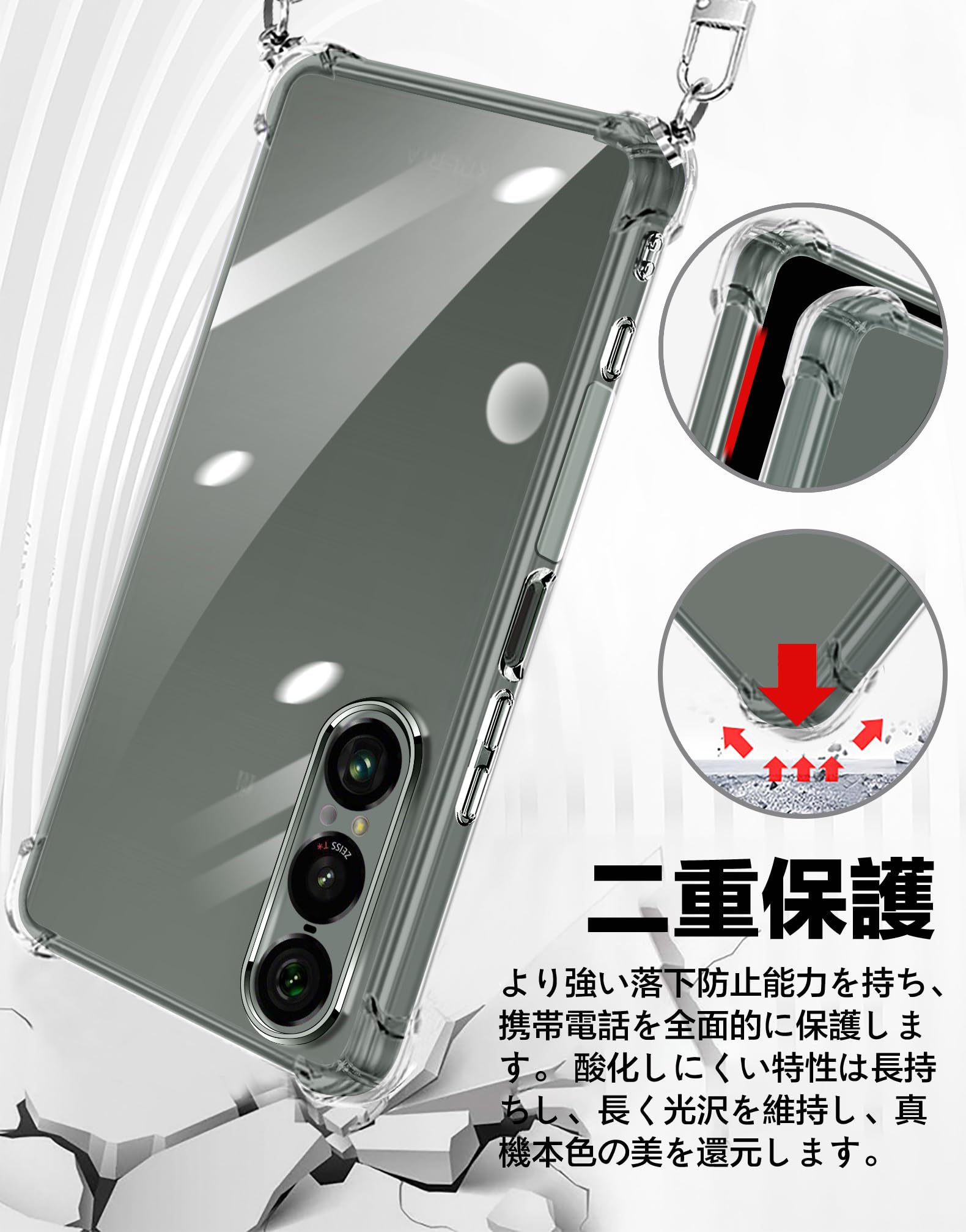 【努力特価】Xperia 1 VII ケース ショルダー クリア ケース 耐衝撃 全面保護 エクスペリア 1 VII カバー ストラップ付き スマホケース 調節可能 肩掛け 斜めかけ 縄掛けケース 紐付き 薄型 軽量 取り外し可能 落下防止【透明】