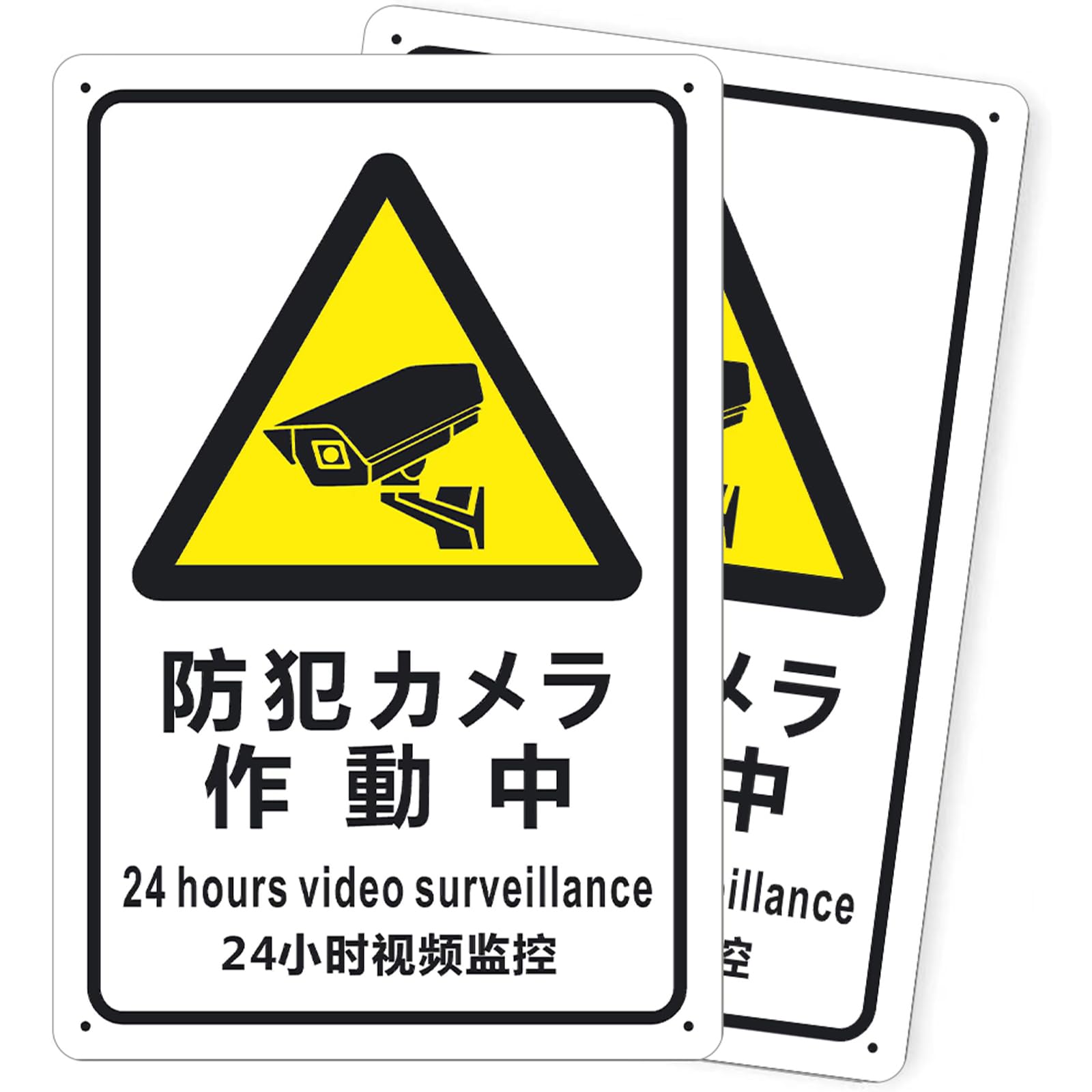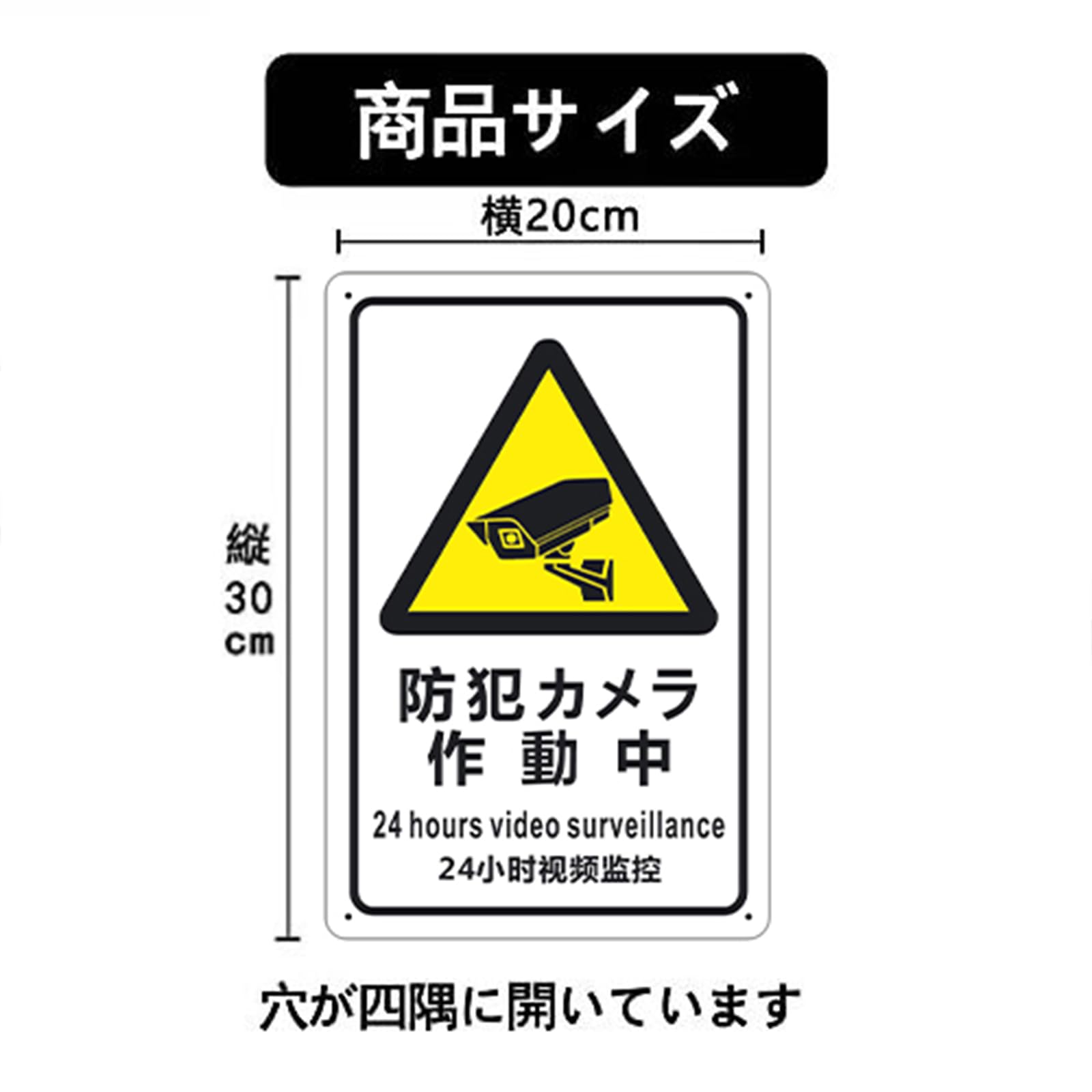 防犯カメラ 看板 プレート 防犯カメラ作動中 看板 プレート アルミ製 30cm×20cm 防水 屋内外両用 (2枚セット)