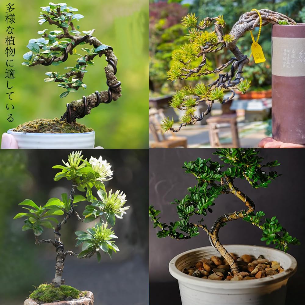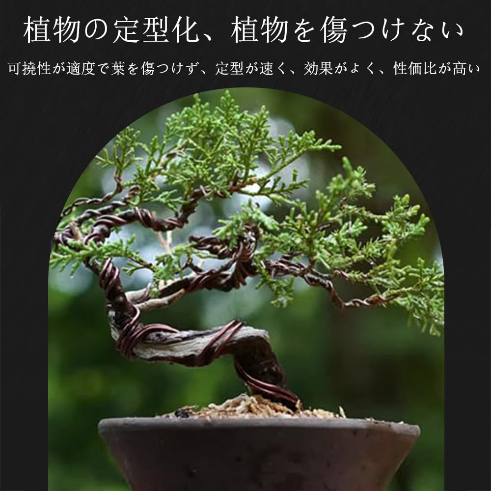 【材料】:この盆栽線は延性に優れたアルミニウム材料を採用し、光熱、湿気などの天候下でも腐食摩耗しにくいため、優れた耐久性を有する。