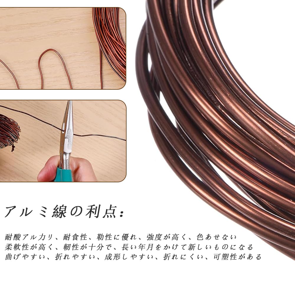 【使いやすい】:針金に比べて柔らかいアルミニウム製で、芯径が滑らかで繊細で、手でも折れ曲がりやすいが、繊細な園芸装飾などであれば、鉗子など追加の補助具が必要である。