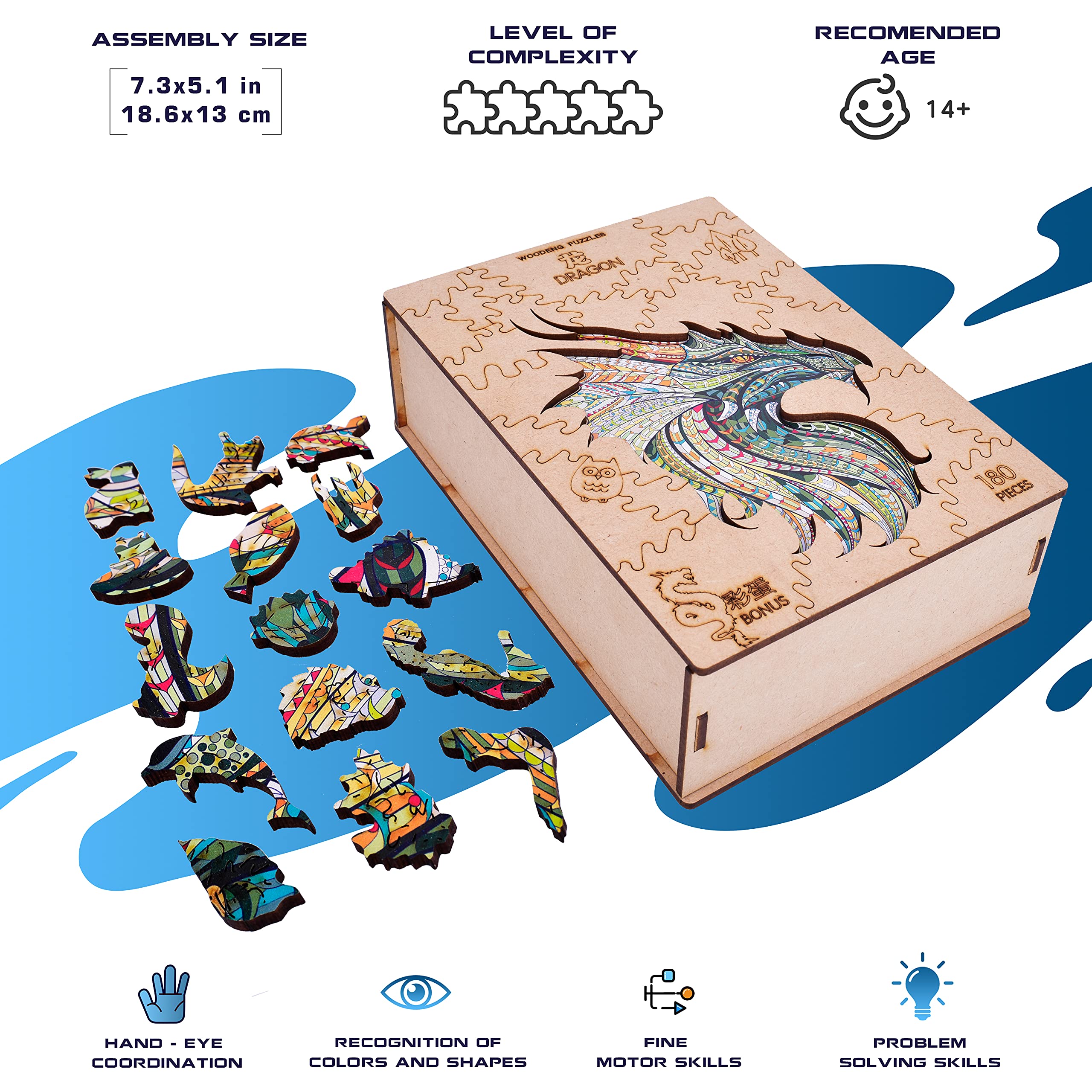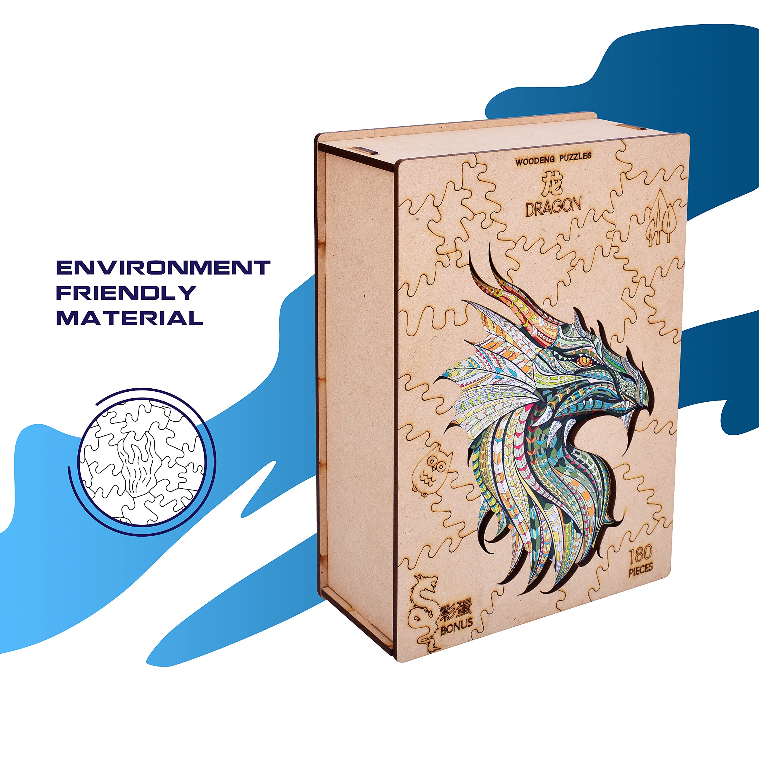 木製パズルジグソーパズル、知育おもちゃ動物の形,青龍、23x33 cm(9x13 inches)、180錠、青少年と大人のための最高の贈り物、ユニークな形のパズル
