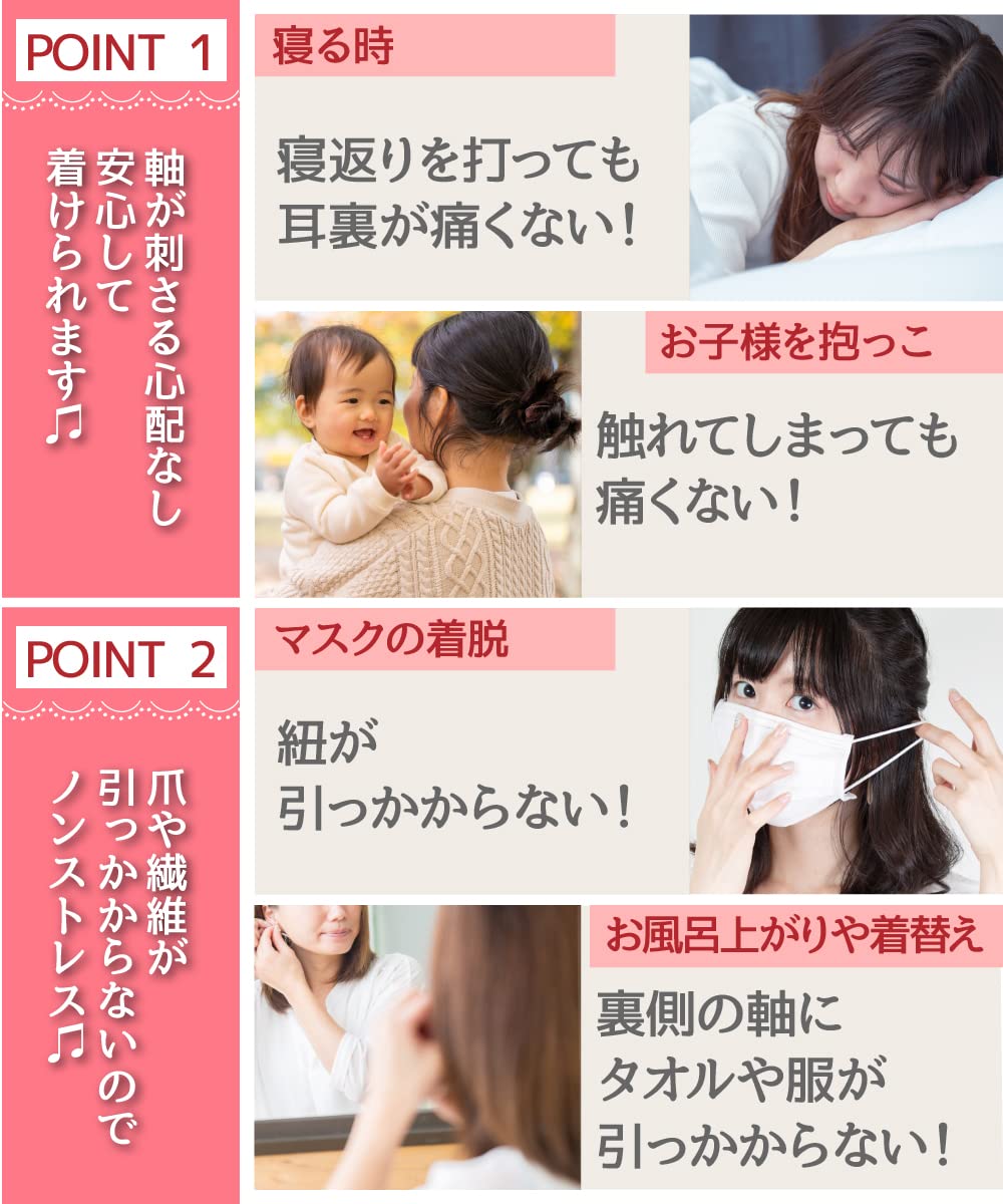 **ピアスの軸をキャッチが包み込む、ねじ式キャッチなので、寝転んでも軸が刺さらない!痛くない!マスクの紐や服に引っかける怖い思いをしないストレスフリーのピアスです。
