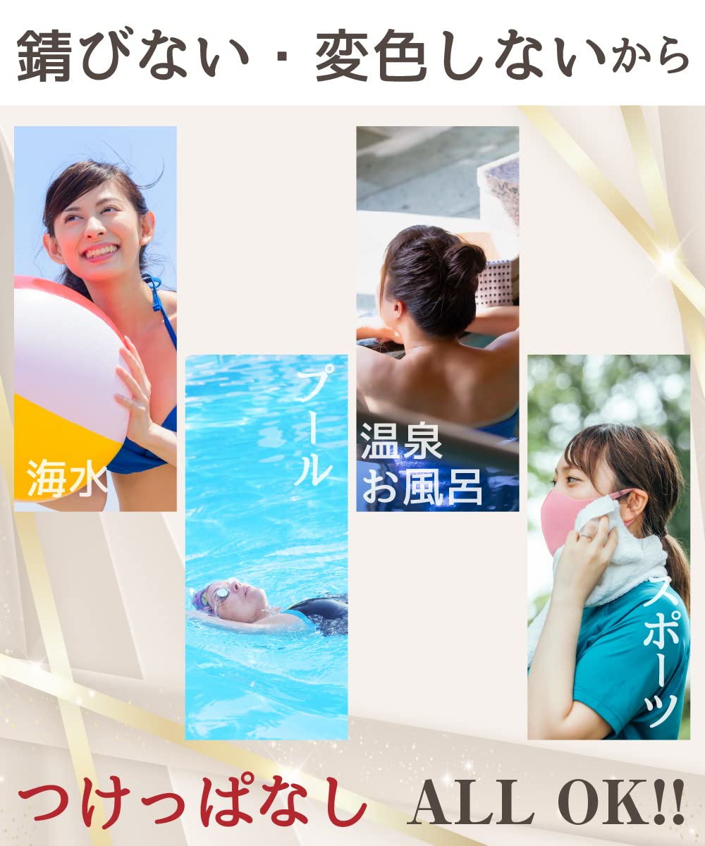 **アレルギー対応のステンレス使用。錆びない、変色にも強い!お風呂でも、寝ているときも付けていられるALL DAY タイプです。