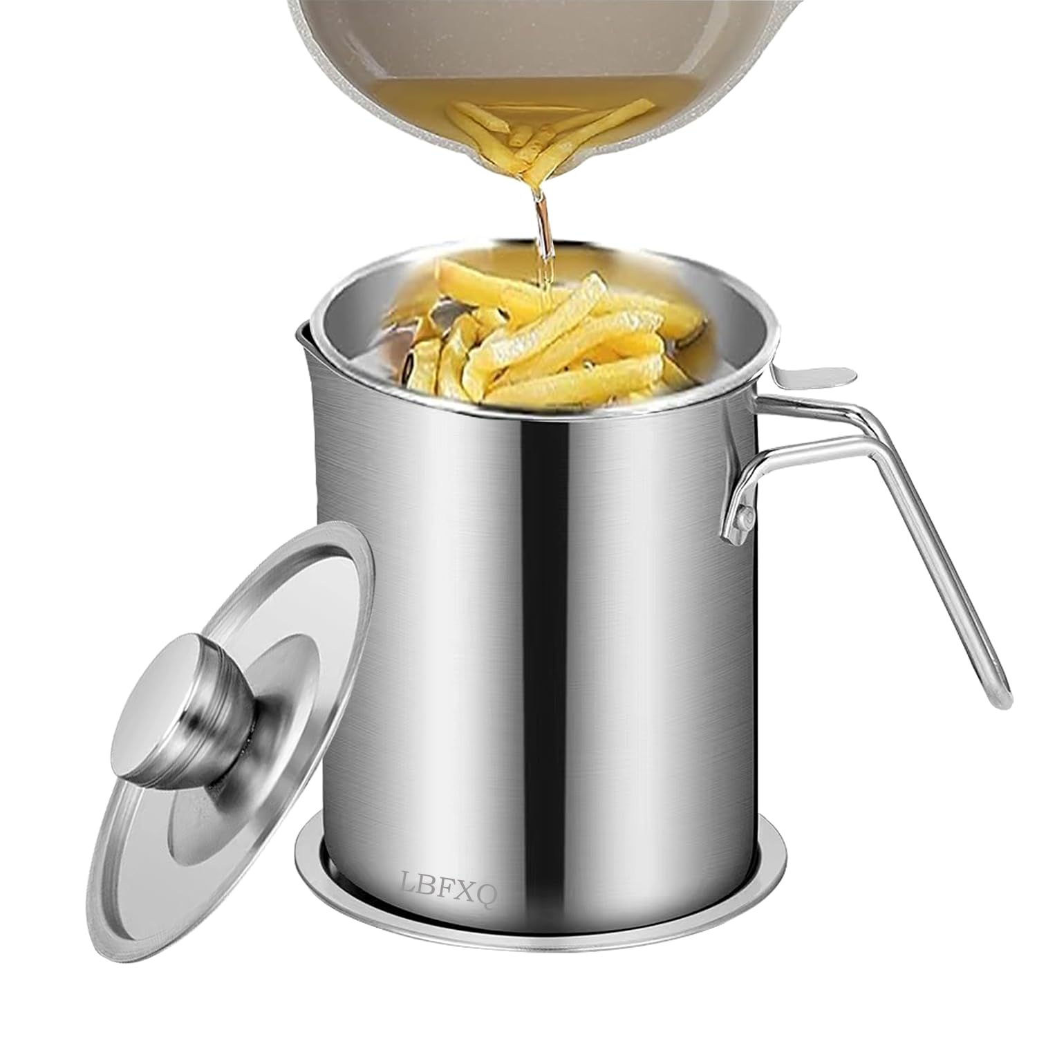 LBFXQオイルポット ステンレス 油漉し器 1.4L天ぷら油 フィルターカートリッジ 油入れ容器 油こし器 油ポット…