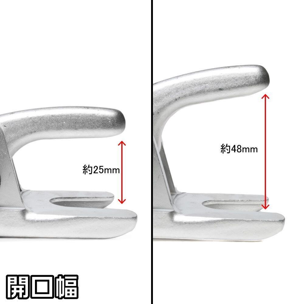 アストロプロダクツ タイロッドエンドプーラー TL352 全長 155mm 重量 1.2kg 開口幅 約25〜48mm 差込幅 約22mm ボルト二面幅 24mm 材質 スチール ●タイロッドエンドやボールジョイントの取り外しに使用する特殊工具です。●ピンの位置を差し替えることで、リフティング量を2段階に調節できます。