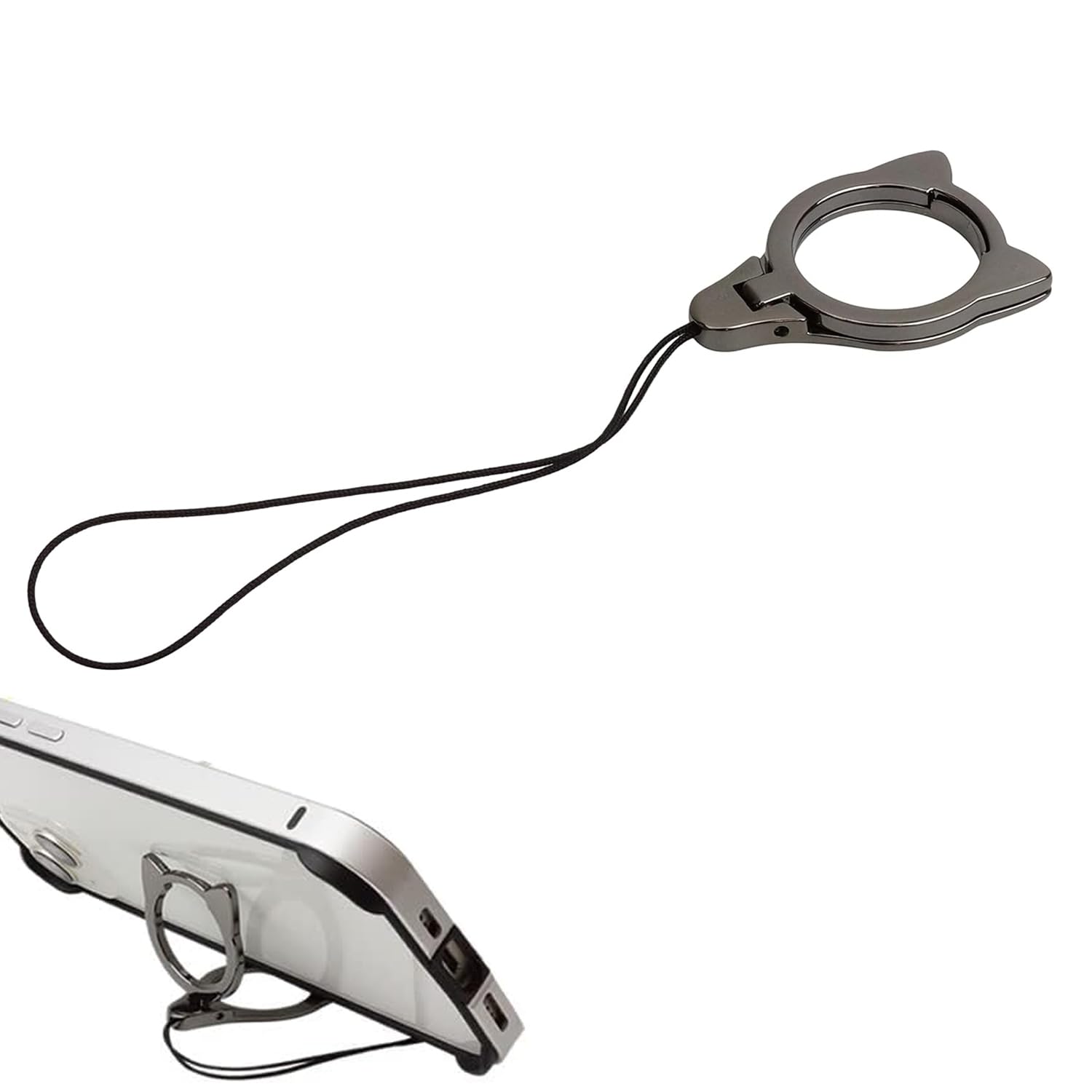 【人気】スマホリング スマホスタンド 2in1 落下防止 猫 かわいい 猫耳 スマホアクセサリー (ブラック)スマホストラップ 携帯ストラップ スタンド リングストラップ スマホ落下防止 さびない 丈夫 携帯電話ホルダーストラップ 多機能クリエイティブリングバックル、携帯電話ホルダーとして使用可能
