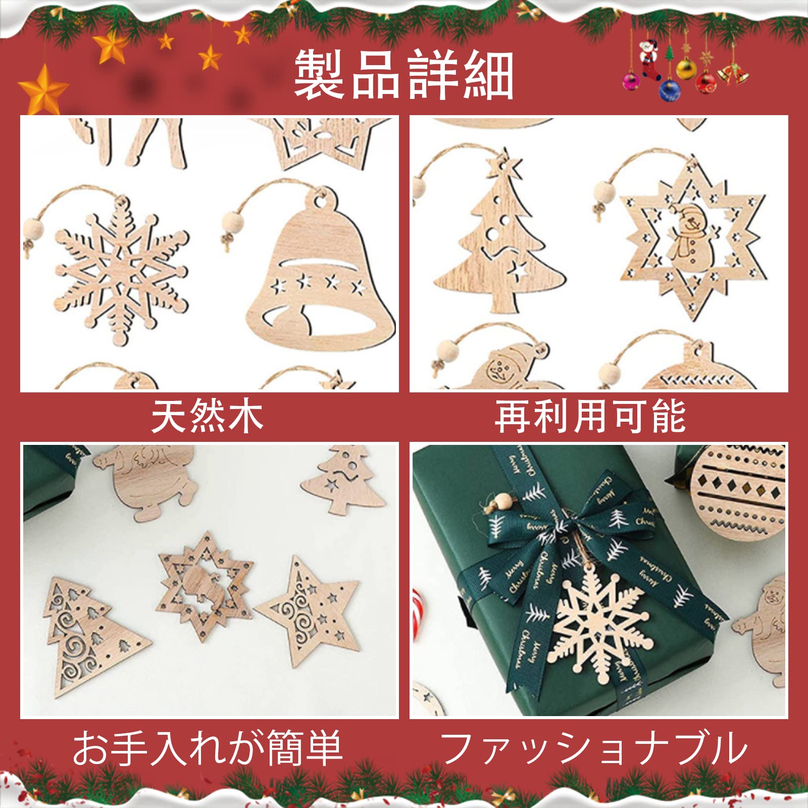 【使いやすい】木製ペンダントのサイズは約7cmです。各オーナメントには紐がついています。クリスマスツリーに引っ掛けて、ツリーをより可愛く飾り付けます。