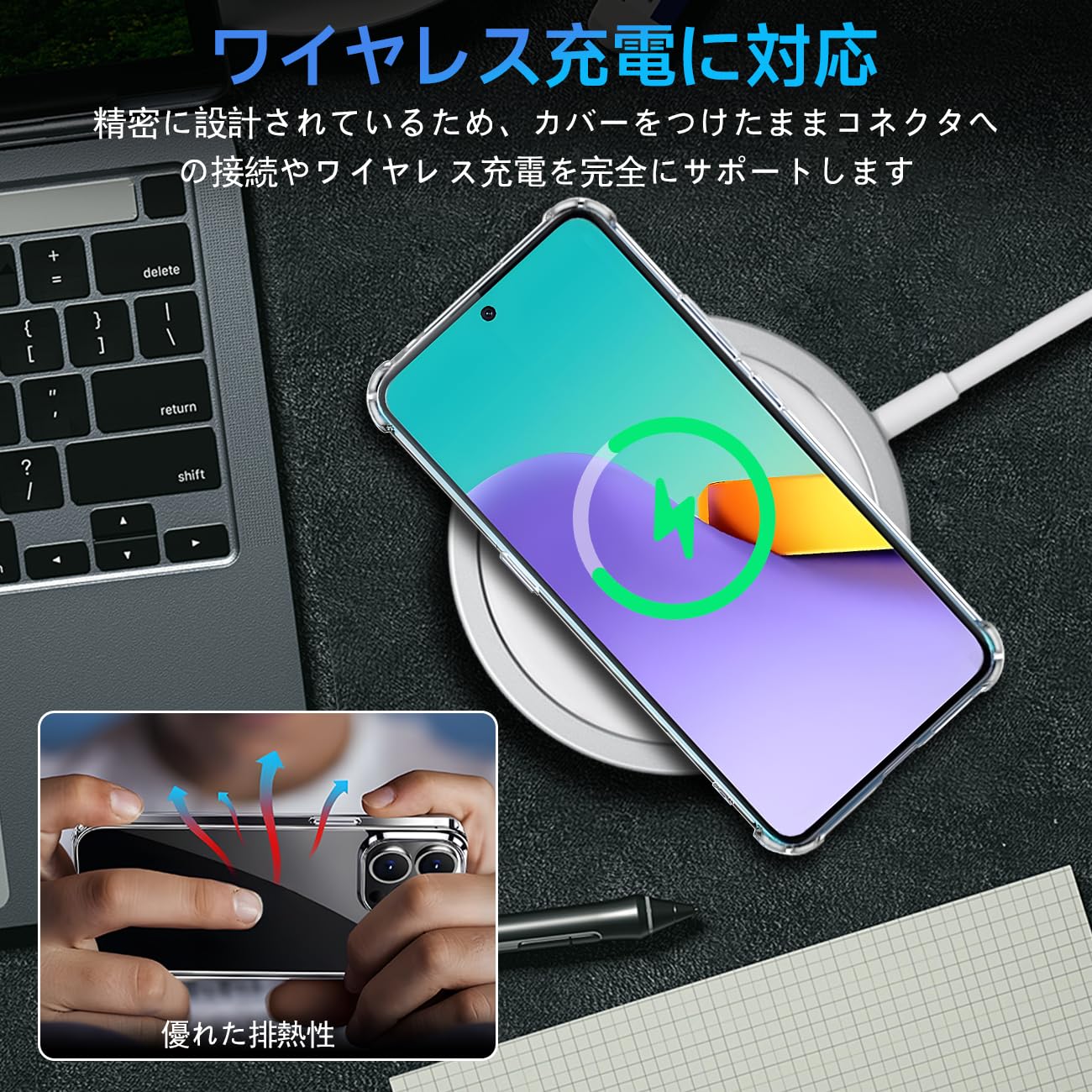 【細かいところまで保護できる安心設計・レンズと液晶画面にも保護】携帯電話を平らな面に置いたとき、液晶画面とカメラレンズの接触による不具合を最小限に抑えるため、カメラレンズより0.5mmをアップし、液晶画面より0.8mmアップしております。スクリーンを保護する同時に、ガラスフィルムをまったく邪魔しません。更に滑り止めと落下防止の設計があり、テーブルから滑り落ちる心配はありません。裏面は放熱性に優れたポリカーボネート素材を採用し、効率的に放熱し、バッテリーを完璧に保護することができます。携帯電話ケースを付けたままでもワイヤレス充電が可能です。