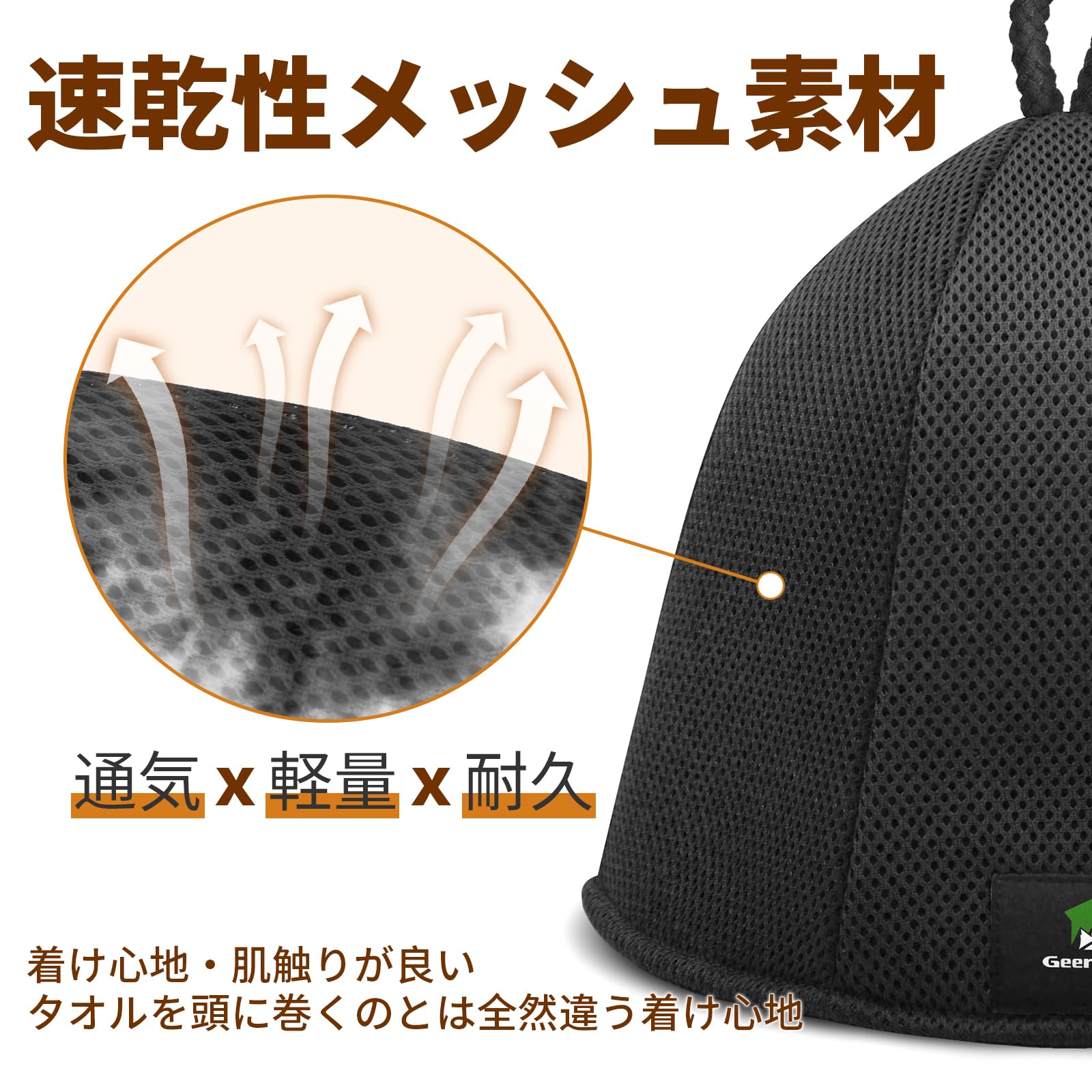 [Geer Top] サウナハット 髪の傷み防止 深くかぶれる 大きめ のぼせ防止 極厚 二重構造 蒸れない 速乾性 丸洗い可能 メンズ レーディズ サウナグッズ 帽子 【厚手2枚重ね・高い遮熱性】厚手な二重メッシュ構造により、サウナ室の高温から頭部をしっかりガードできます。断熱効果に優れて、熱によるダメージから頭皮や髪を守り、頭の温度上昇によるのぼせを防ぎます。