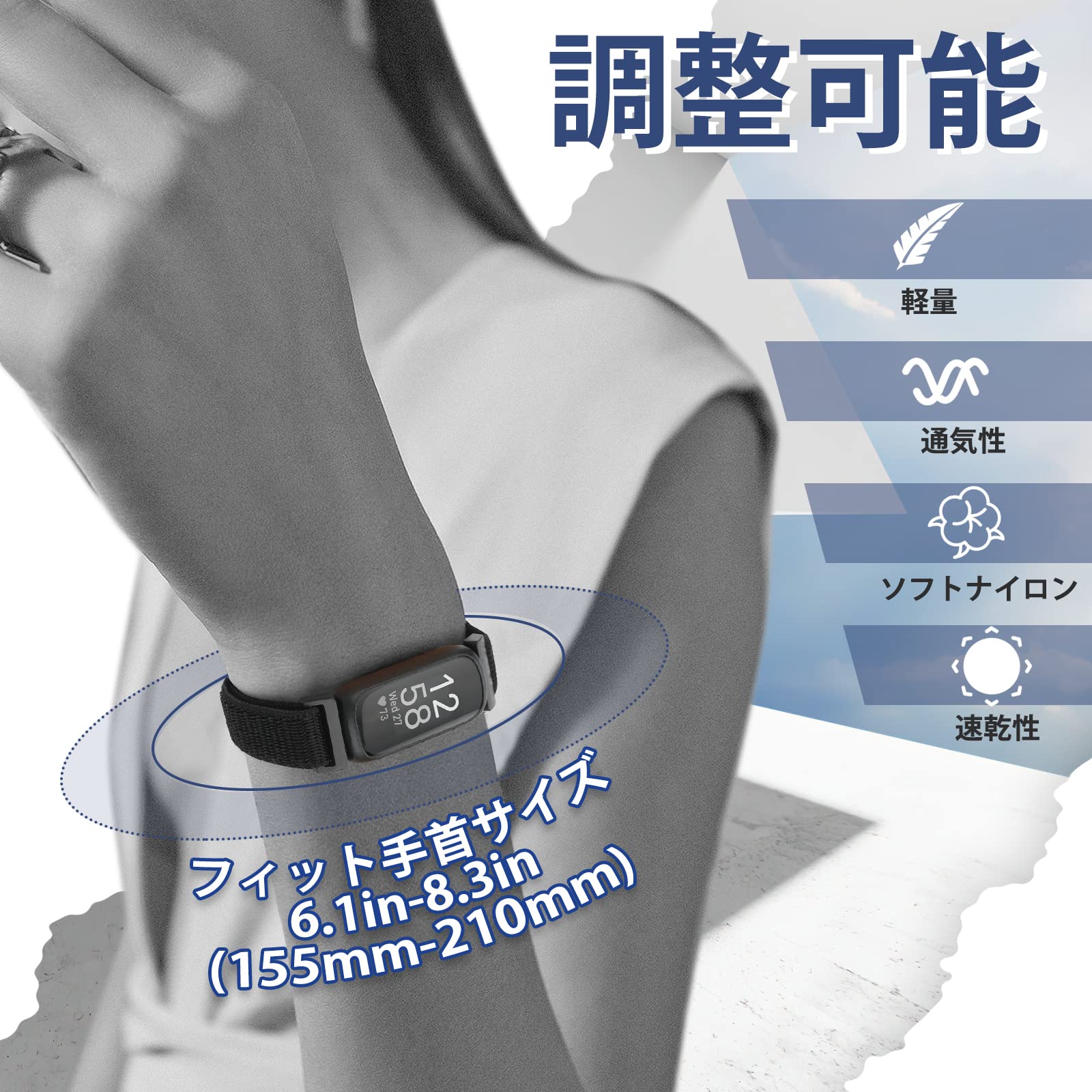 【肌に優しく柔らかい素材】-- Fitbit Inspire 3 ナイロン時計バンドは、よりタイトな織りのナイロンでできており、柔らかく、通気性があり、耐久性があり、頑丈で、無臭で肌に優しく、他のような肌への刺激を引き起こしません。 バンド。 耐摩耗性と通気性に優れたデザインにより、運動中も手首を涼しくドライに保ち、汗をかきません。