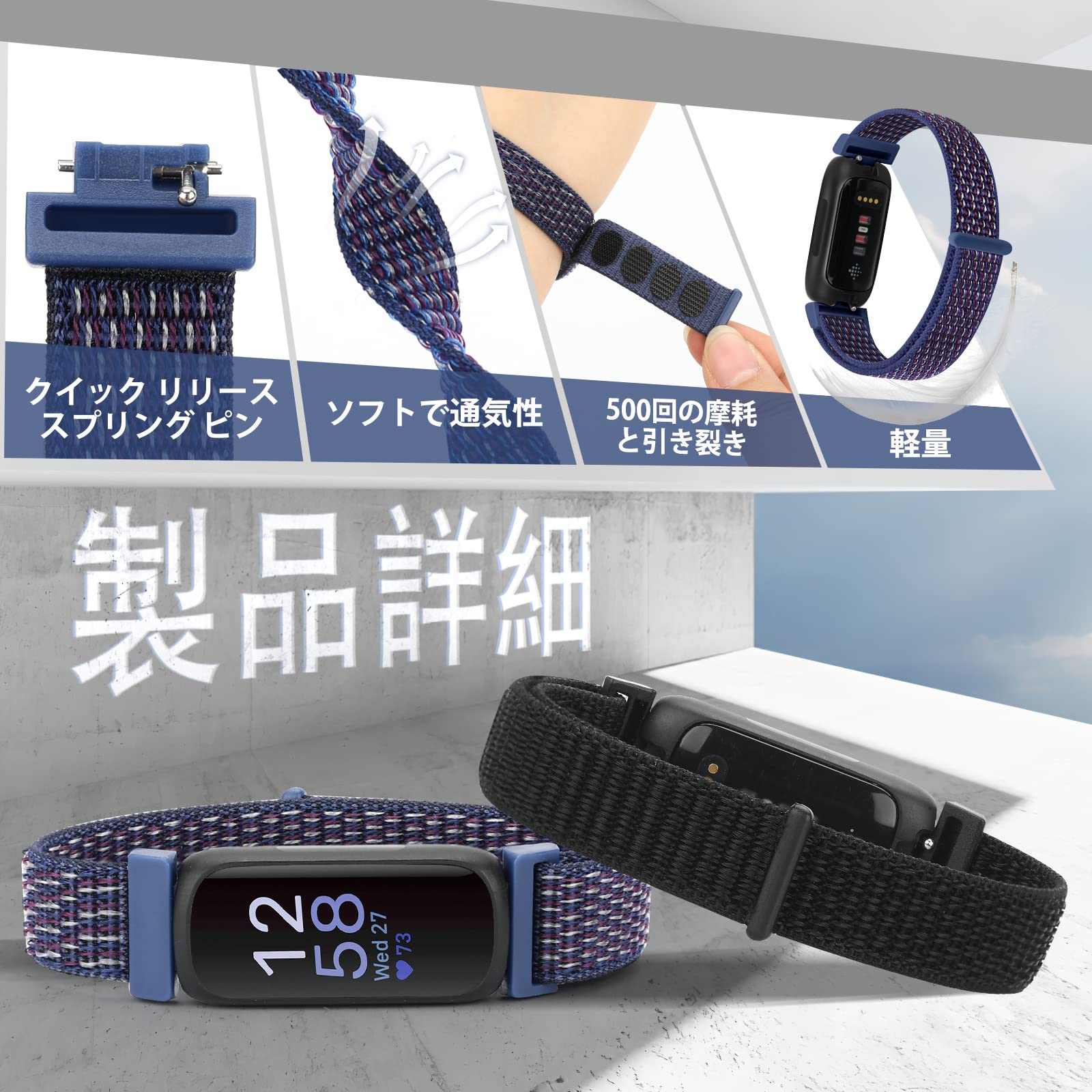 【対応モデル】-- Fitbit Inspire 3/Fitbit Inspire 2/Fitbit Inspire HR/Fitbit Inspire/Fitbit Ace 2/Fitbit Ace 3 フィットネストラッカーと互換性のあるナイロン時計バンド。 Fitbit ウォッチは含まれていません。 購入する前に時計のモデルに注意してください!