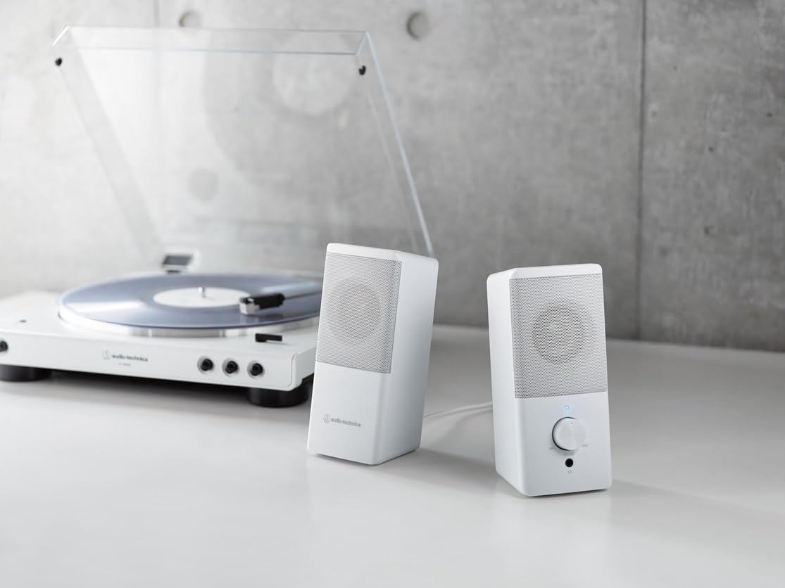 【在庫処分】オーディオテクニカ AT-SP95 WH アクティブスピーカー 白 PC タブレット レコードプレーヤー USB給電 省スペース設計 前面ヘッドホン端子 省電力 高出力 ホワイト