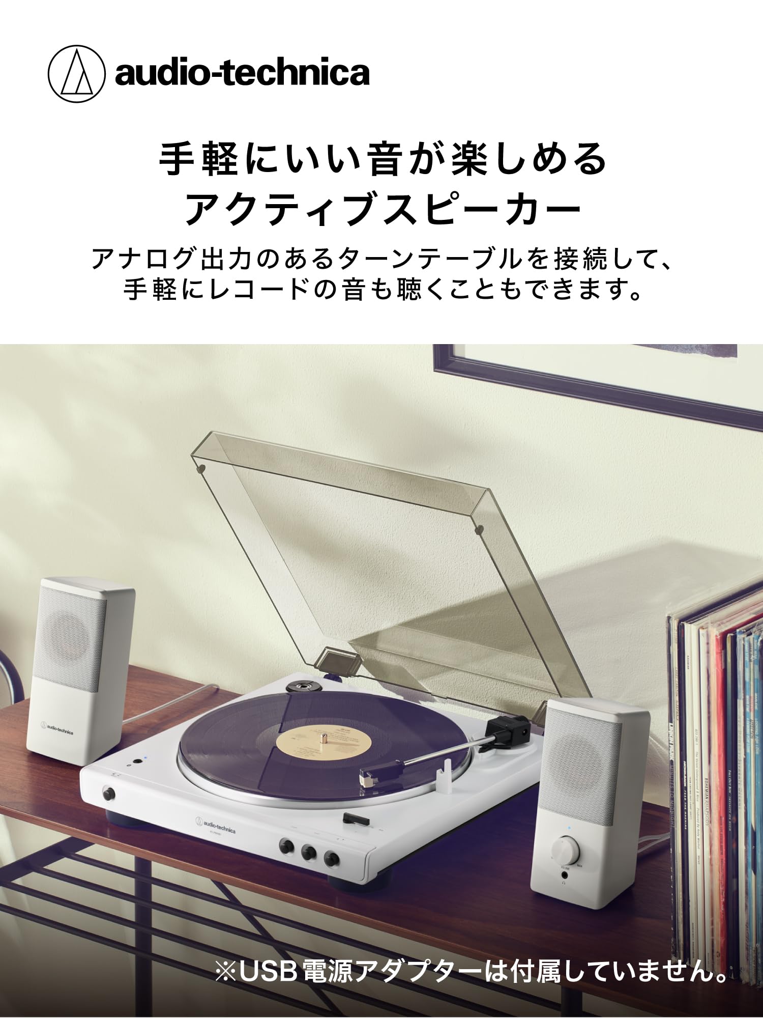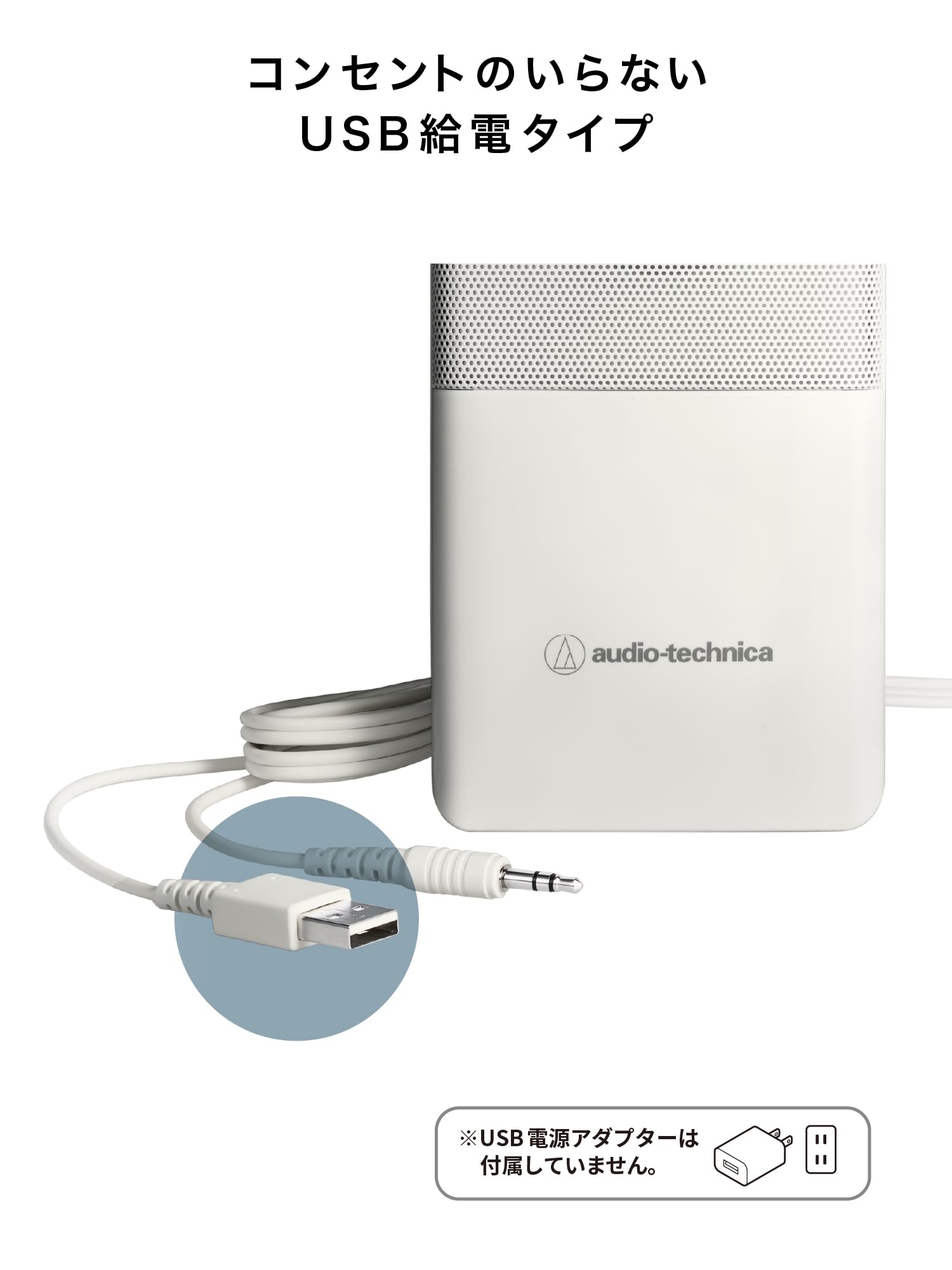 オーディオテクニカ AT-SP95 WH アクティブスピーカー 白 PC タブレット レコードプレーヤー USB給電 省スペース設計 前面ヘッドホン端子 省電力 高出力 ホワイト