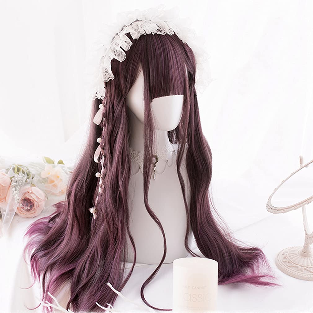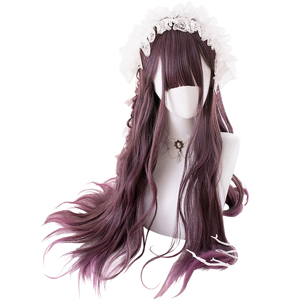 ゴシック ロリータ ウィッグ ゴスロリ 原宿風 GAL系 コスプレ ブラウン 紫 ミックス ロング カール 巻き髪 カツラ 森ガール ゆめかわいい お姫 小顔 パーティー ハロウィン 仮装 クリスマス 日常 かつら wig