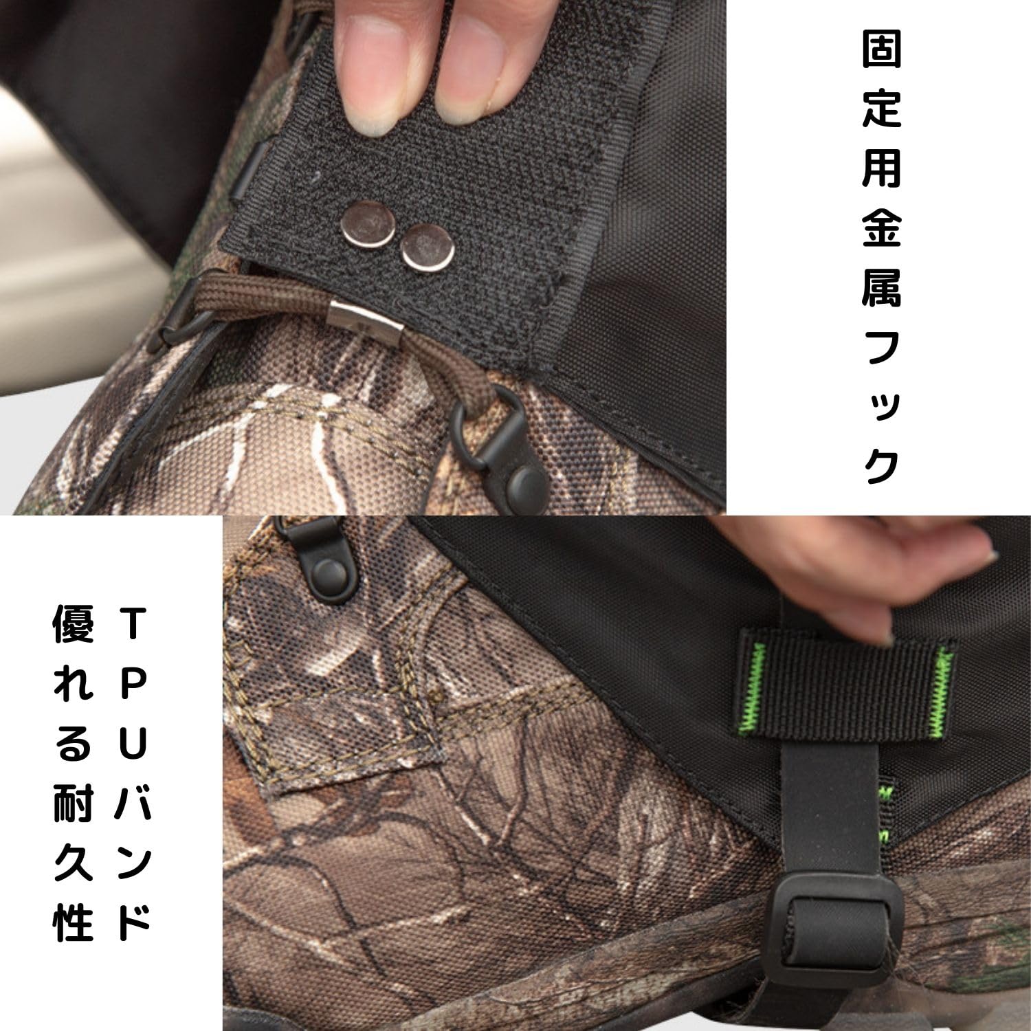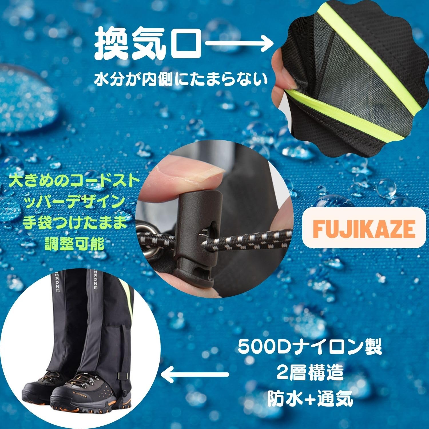 ?【デザイン】二重構造により、従来のゲーターよりも一層強力に雨や泥をガードします。どんな厳しいコンディションでも安心してアウトドア活動を楽しめます。防水性を保ちながらも、通気性を確保する設計により、長時間の着用でも快適さをキープできます。