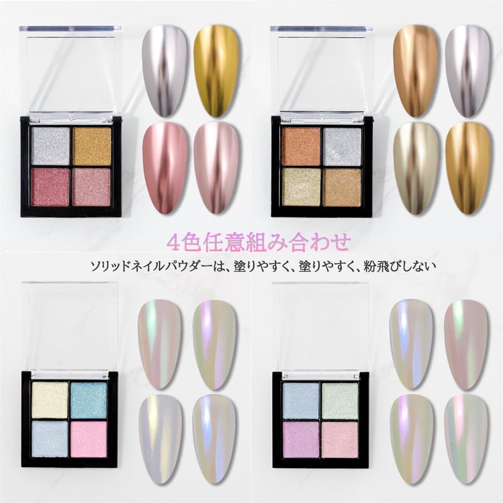 ミラーパウダー パレット ミラーネイル パウダー オーロラパウダー ネイルセットソリッド ジェルネイル セット 固形 DIY スポンジチップ付き 4色セット (03, 4色)