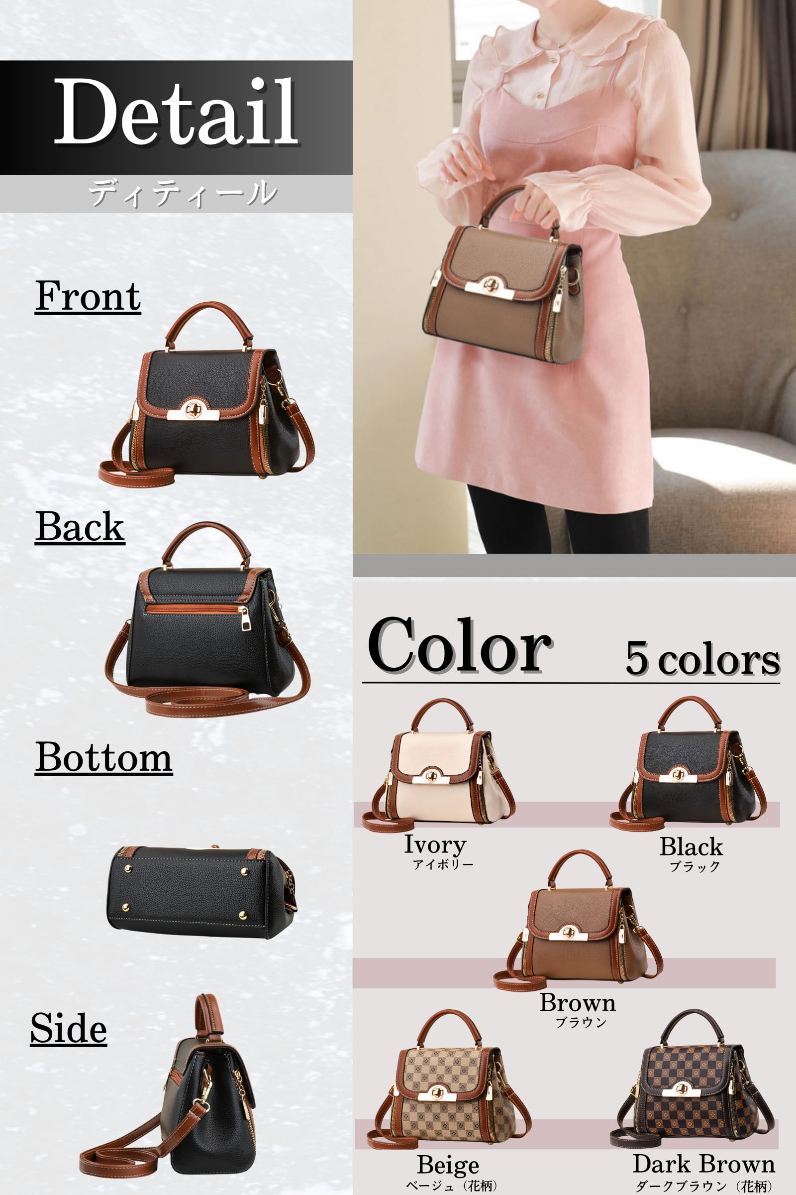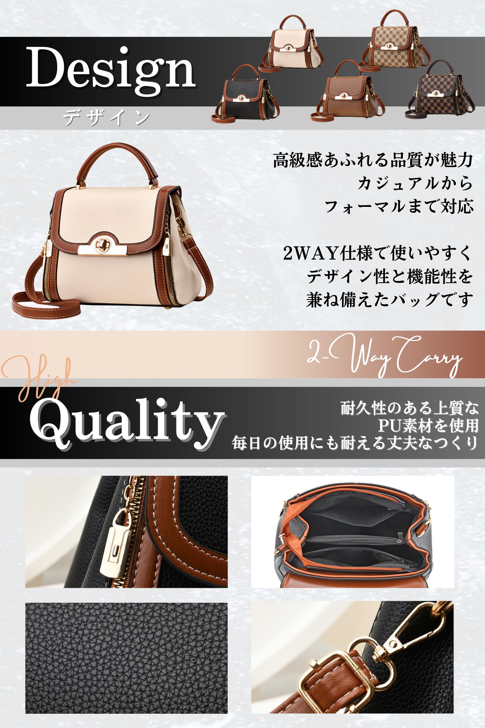 【上質素材で耐久性も備えた高級バッグ】 耐久性のある上質なPU素材を使用し、毎日の使用にも耐える丈夫なつくり。汚れにも強く、雨の日でも安心して持ち歩ける実用性が魅力。長く使えるデザインと品質で、コスパも抜群です。