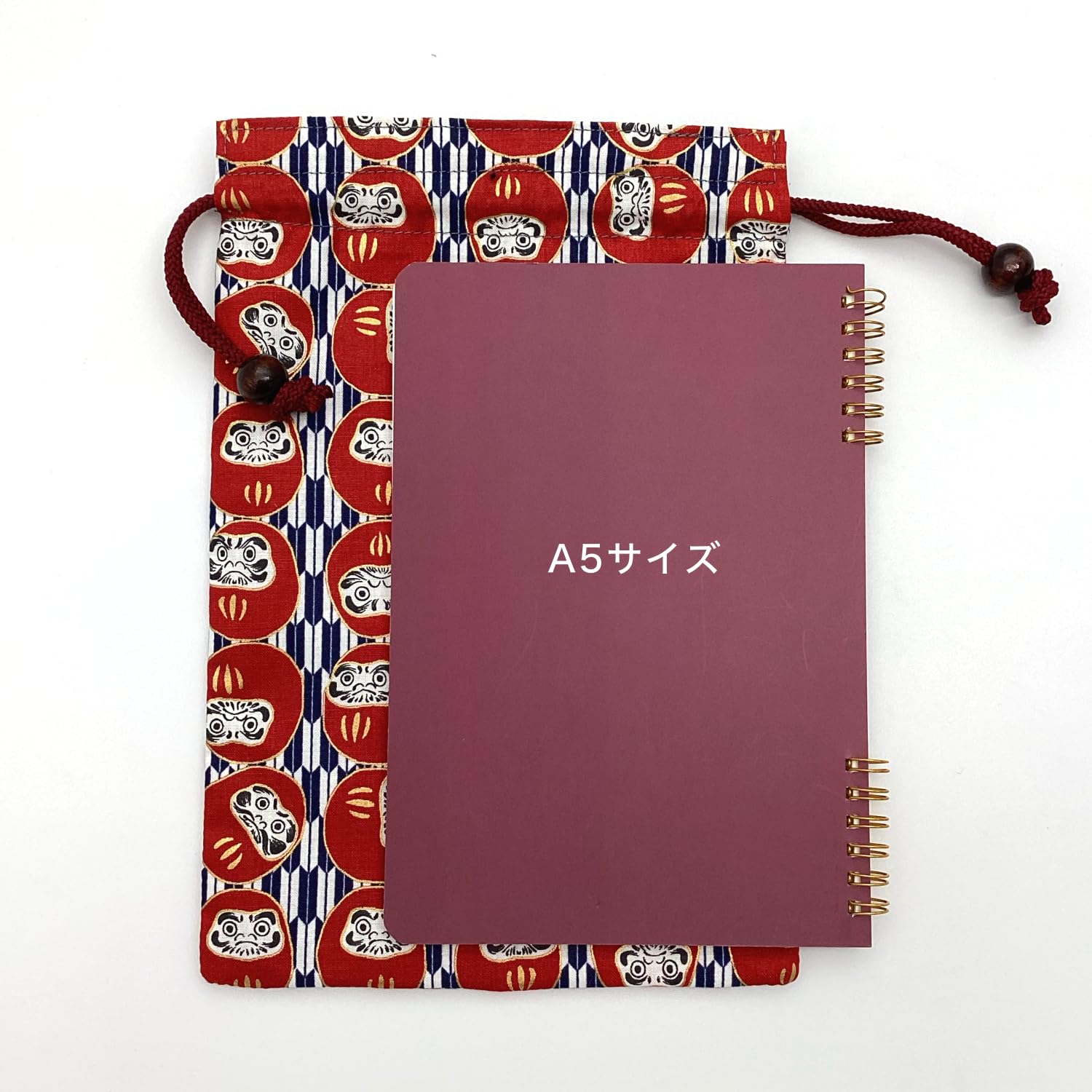 京佑 日本製 御朱印帳 ケース 巾着 袋 約26.5×18cm 木玉付 古典古布 和柄 招福だるま矢絣 紺