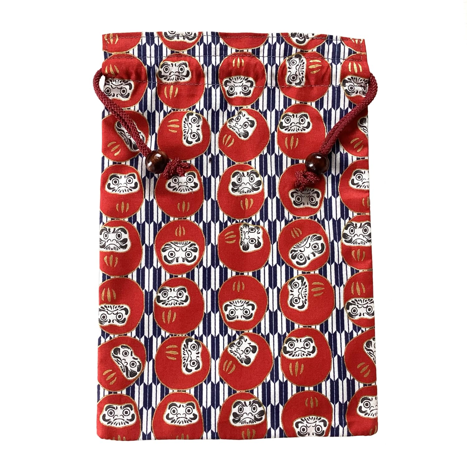 【新着特価】京佑 日本製 御朱印帳 ケース 巾着 袋 約26.5×18cm 木玉付 古典古布 和柄 招福だるま矢絣 紺