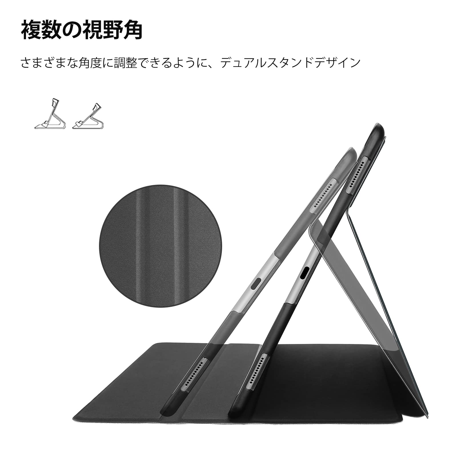 ? 【縦と横にスタンド】縦向きにも横向きにもスタンドできます、横には2つの立ち角度が調整可能です。