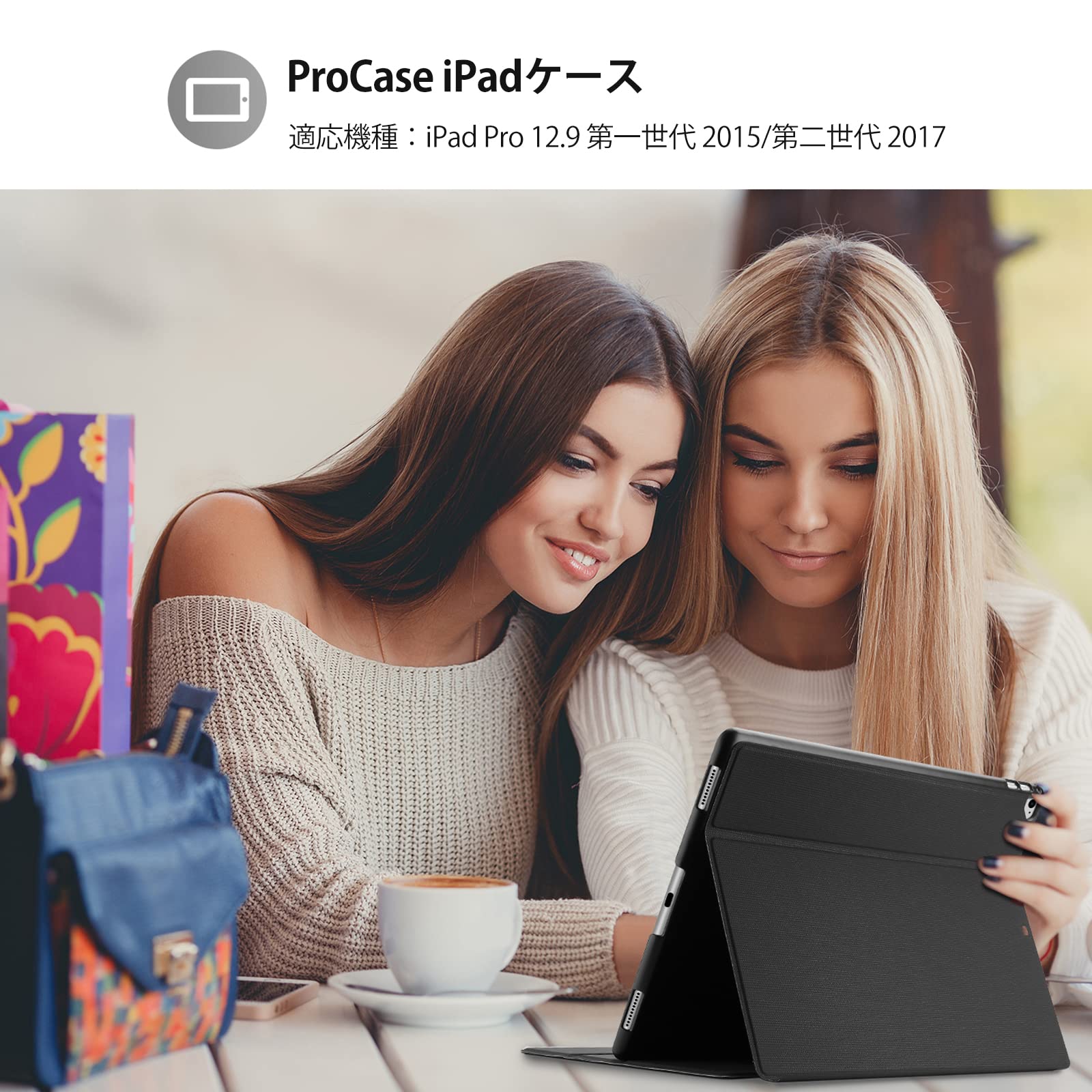 【在庫処分】ProCase iPad Pro 12.9 ケース 2世代・1世代(2017 2015) 耐衝撃 縦と横にスタンド 保護カバー (ブラック)